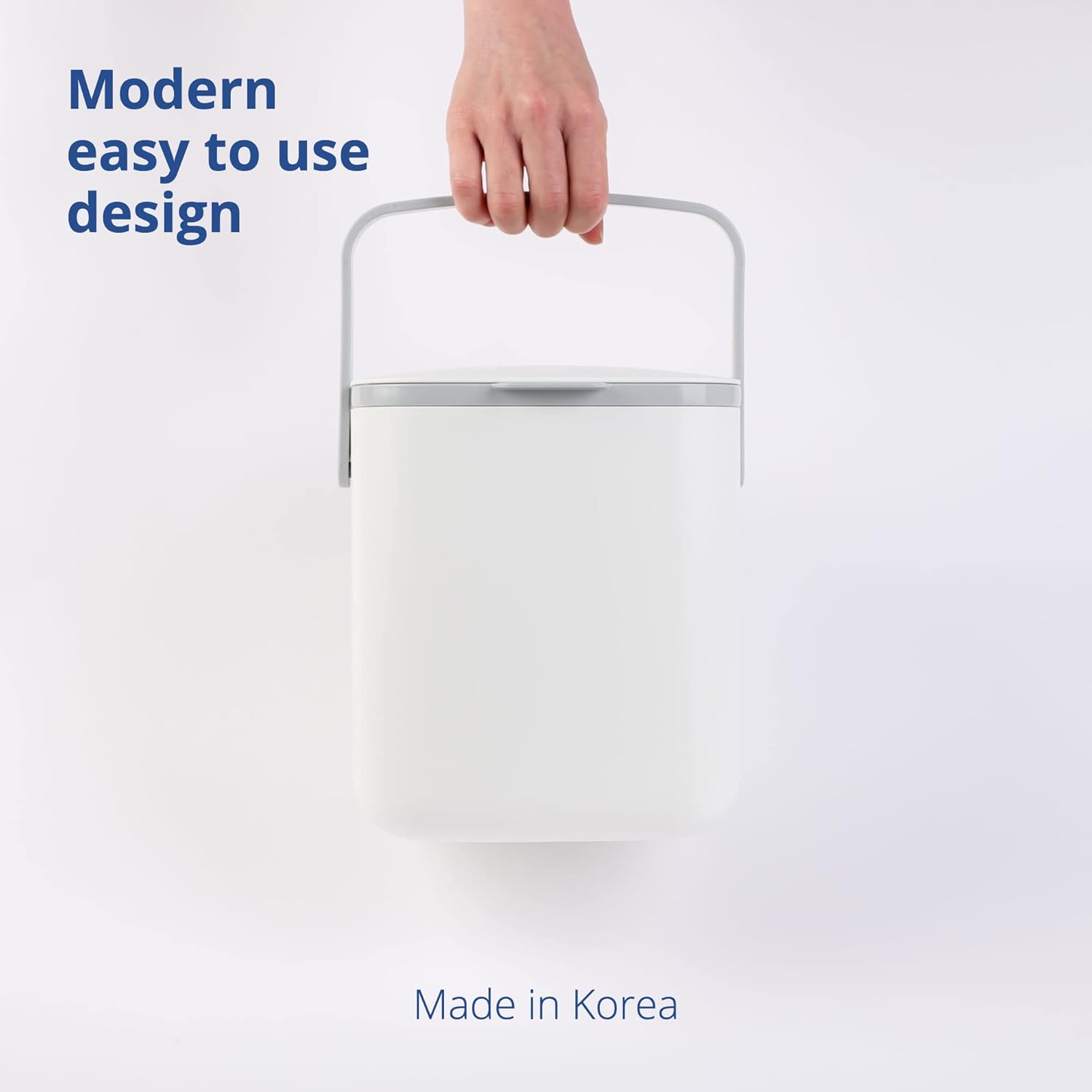 BLUE GINKGO Kitchen Compost Bin [5L / 1.32 GAL] – Filter-Free, Odor-Tight Countertop Food Waste Pail with Handles (Made in Korea, White)