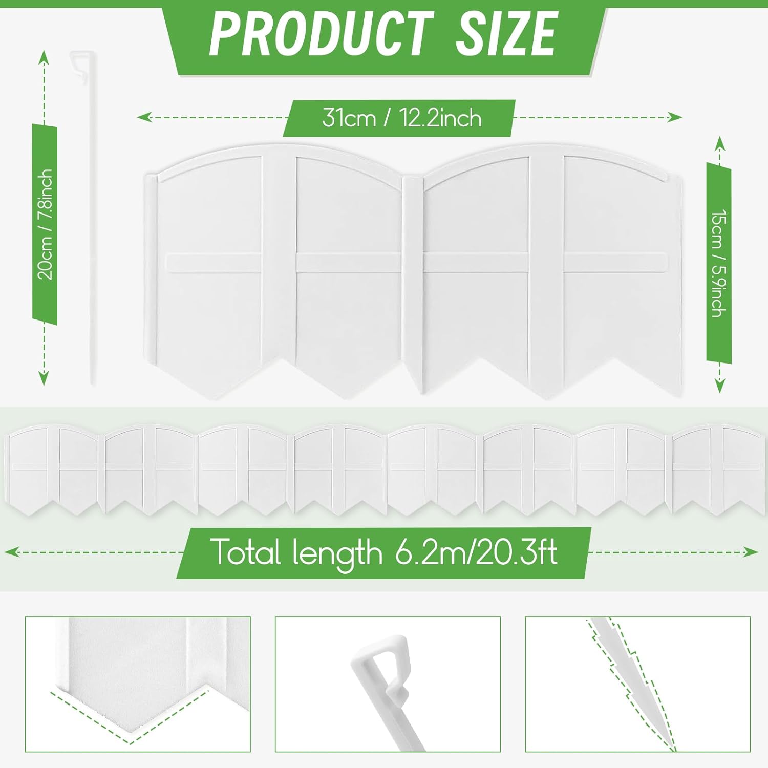 20Pcs Garden Edging Border Landscape Edging Lawn Garden Fence Decorative Landscape Border 20Ft Length Landscaping with 20 Pcs Stakes for Lawn Flower Bed Yard White