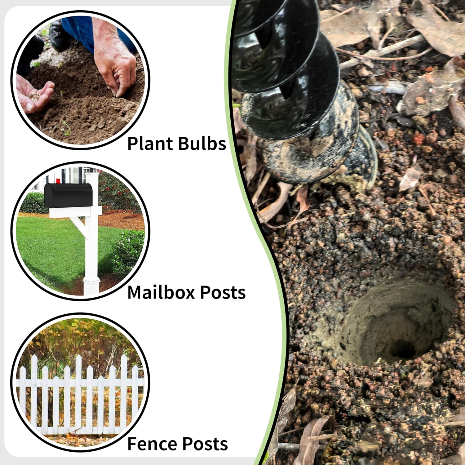 - The auger drill bit has a sharp, extensive spiral tip that easily pushes through the soil, creating a perfect hole for planting.