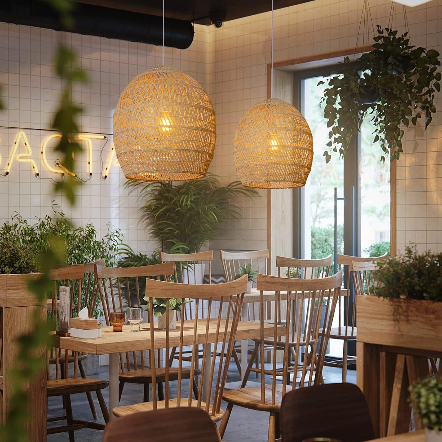 - WIDELY APPLICATION:Farmhouse woven hanging lights perfect for dining room,living room,bedroom,kitchen islands,nursery,cafe,foyer,entrance,small dining table,bar area,reading nook,sitting area,loft,beach villa,farmhouse,warehouse,club,beach plant area,etc.