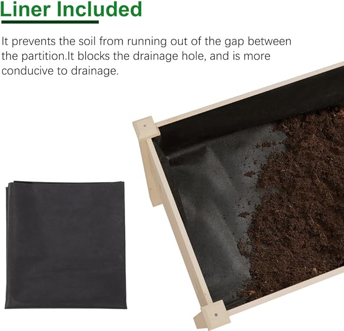 - Raised Garden Bed: Elevated wood planter box with legs for vegetable, flower, and herb growth.