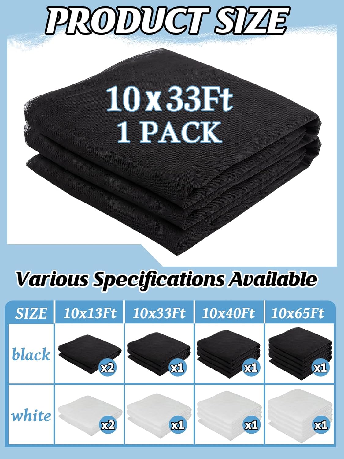 - What You'll Receive: You will get a black garden net barrier with dense mesh, measuring 10ft x 33ft. It's quite large and soft so you can easily cut it into different sized pieces as you need.