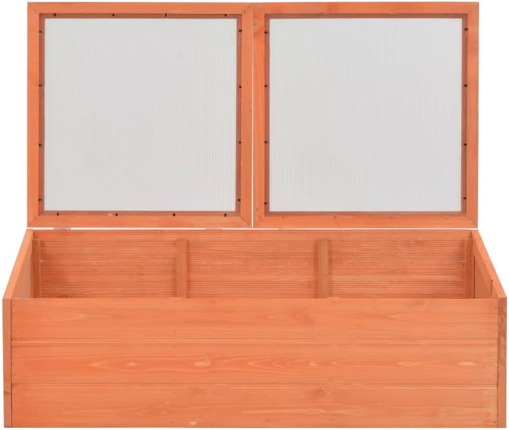 Wooden Garden Portable Greenhouse Sturdy Cold Frame Raised Plants Bed Protection with 2 PC Boards and Openable Top Door Raised Flower Planter Box 39.4"x19.7"x13.4"