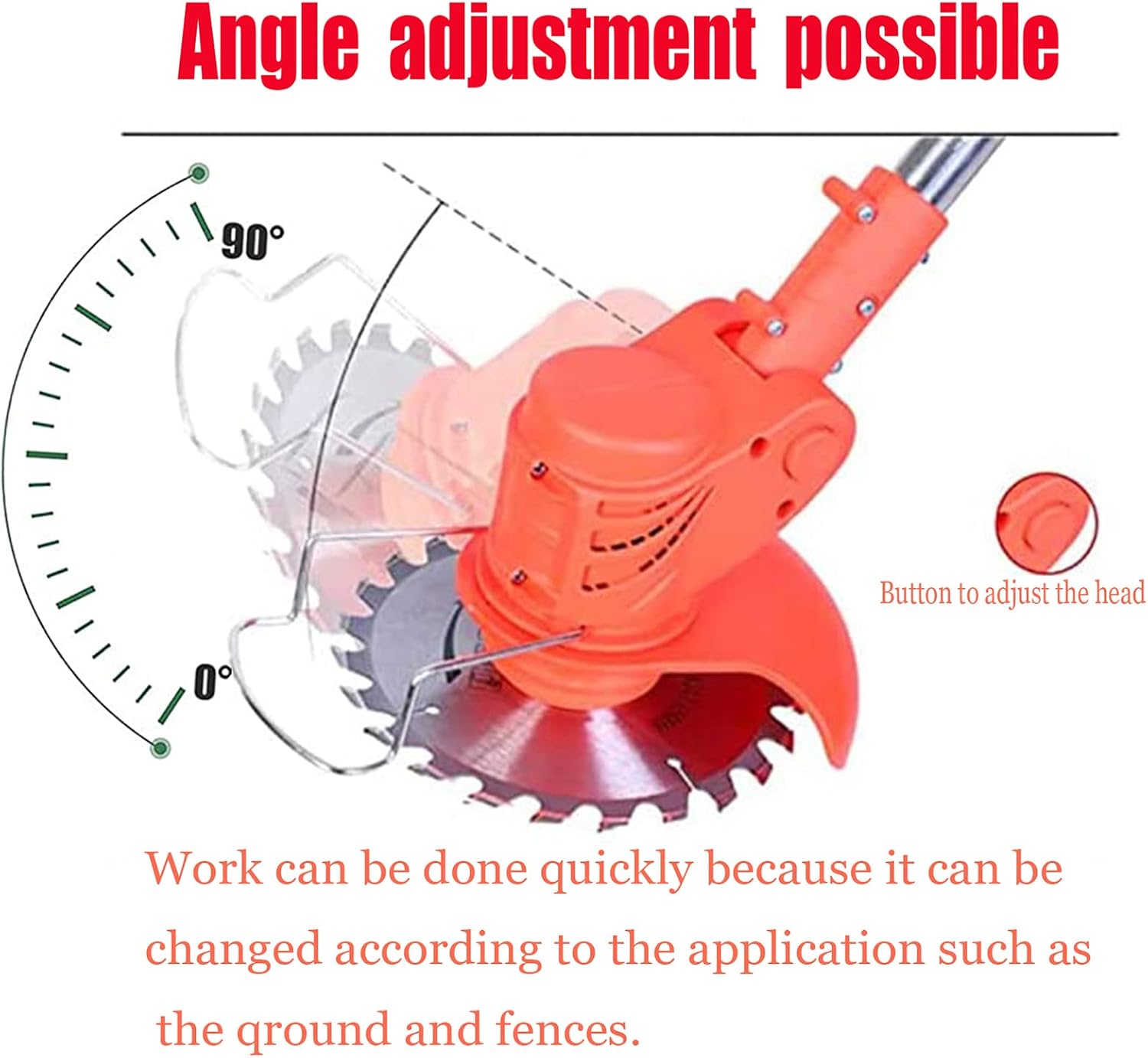 - 【Adjustable Height and Adjustable Handle】:The battery powered Electric Weed stainless steel telescoping pole's length is 33.7-46.25inch,which can fit different user need.Adjustable handle can be smoothly adjusted 90 degrees and up and down.include 2 *Large 24TV capacity lithium batteries,1*charger, 3*manganese steel saw blades,4*stainless steel blades , 10*plastic blades,1*wrenches.1*screwdriver.