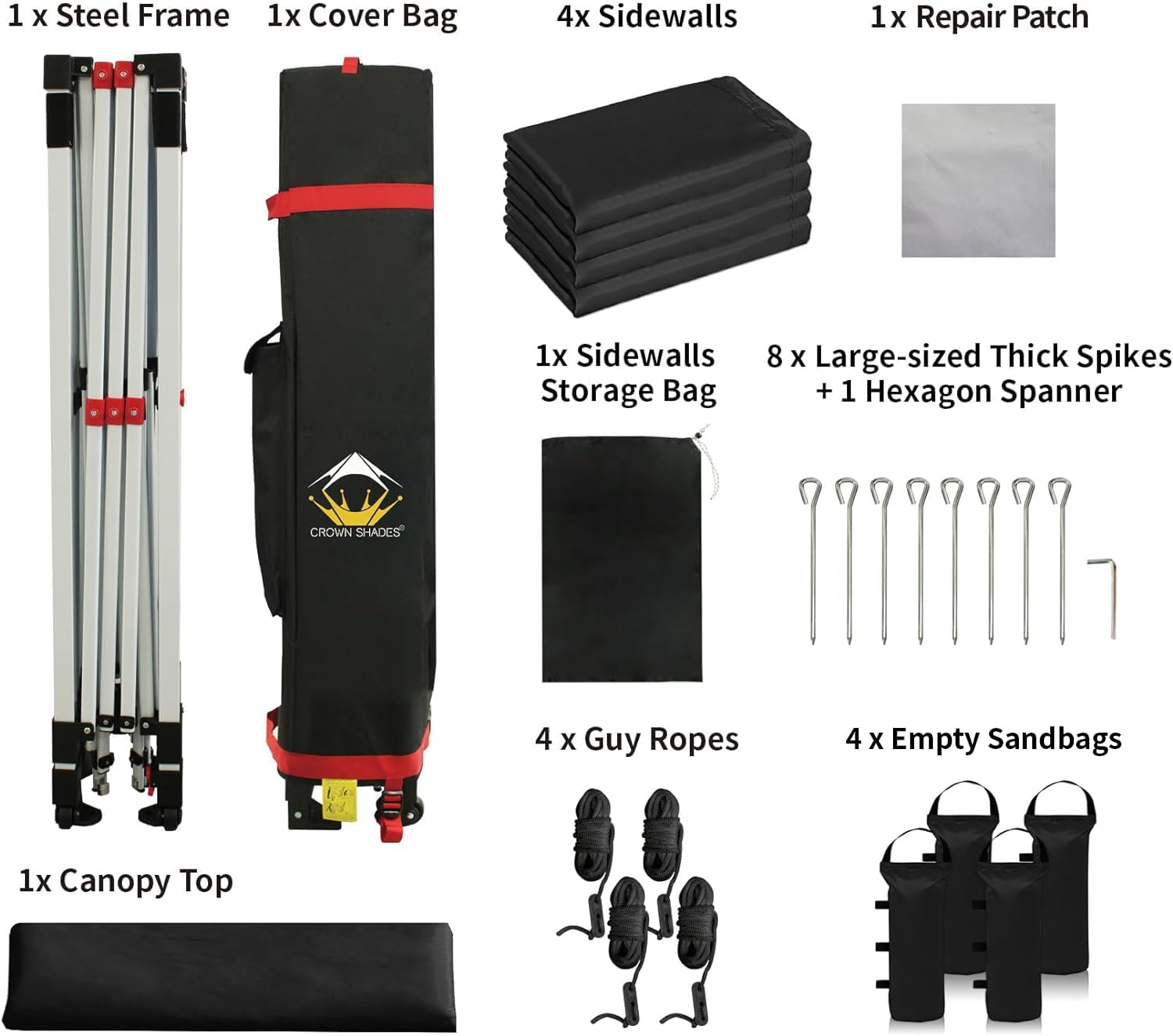 CROWN SHADES 10X10 Comercial Instant Canopy Pop Up Tent with Center Lock (10x10 with 4 Sidewalls, Black)