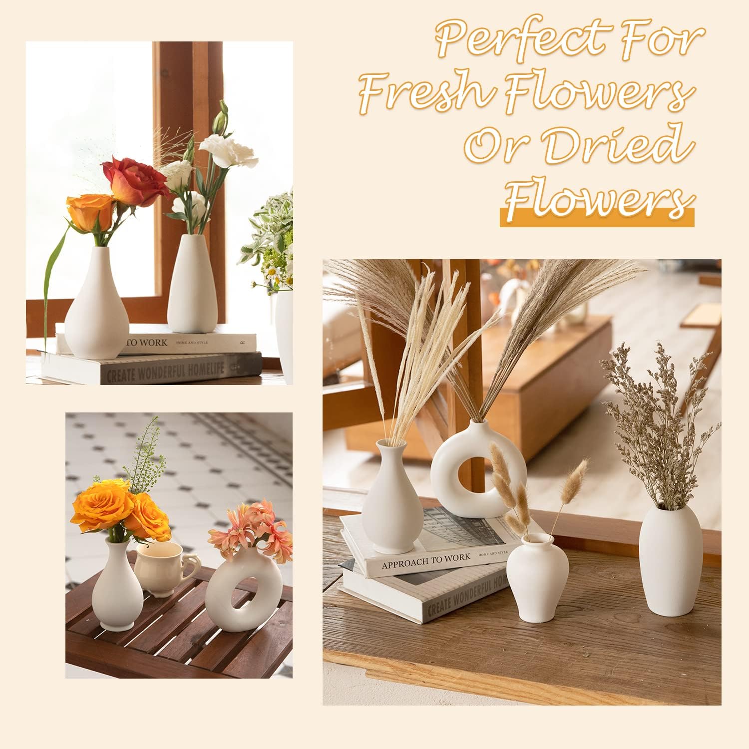 - 【Ceramic Bud Vases Set of 8】This ceramic vase set come with 8 variety of shapes and sizes, enabling you to choose the right one according to your needs.(Please check the detailed size of each style vase in the picture) We have selected some of the most popular shapes (like the hollow design type) and incorporated some of the must-have styles into this set of vases.