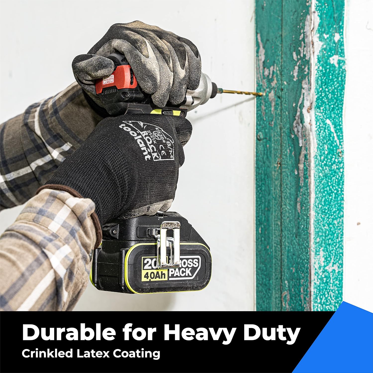 - 【Built to Last】toolant crinkle latex coated work gloves are engineered with reinforced coating to withstand abrasion and resist tears. Perfect for handling rough materials in construction, automotive work, warehouse and gardening - they'll outlast regular work gloves while keeping your hands safe.