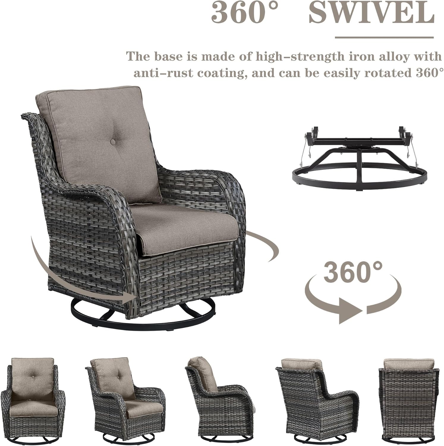 3 PCS Patio Furniture Set - Mixed Grey Wicker Swivel Rocking Chair Set with Side Table
