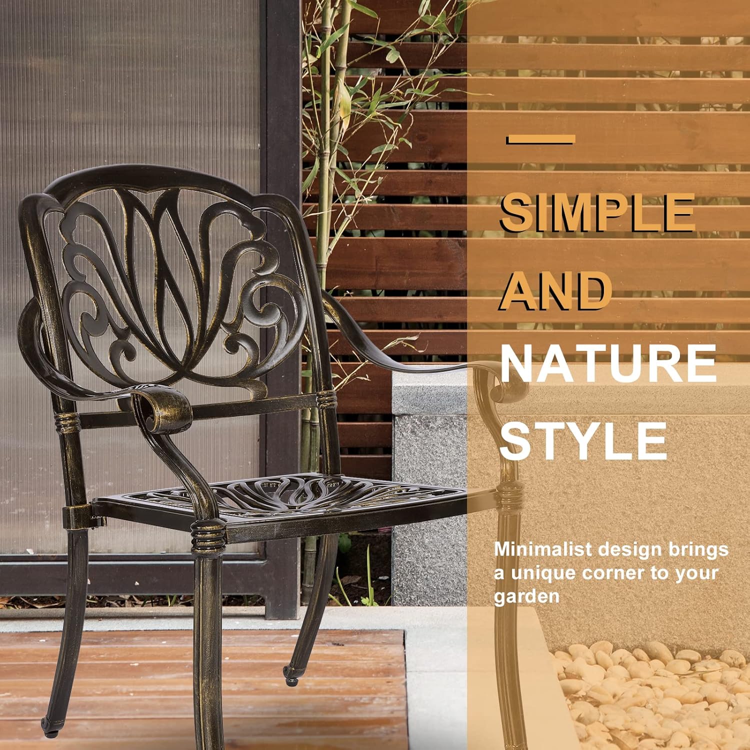 - 【Considerate Design】 - Each leg of this patio chair is equipped with adjustable levelers for non-flat surface. The curved backrest of the chair fits your back, wide seats allow you to sit comfortably, curved armrests allow you to place your arms naturally to get rid of the fatigue of the day and make your leisure time more enjoyable.
