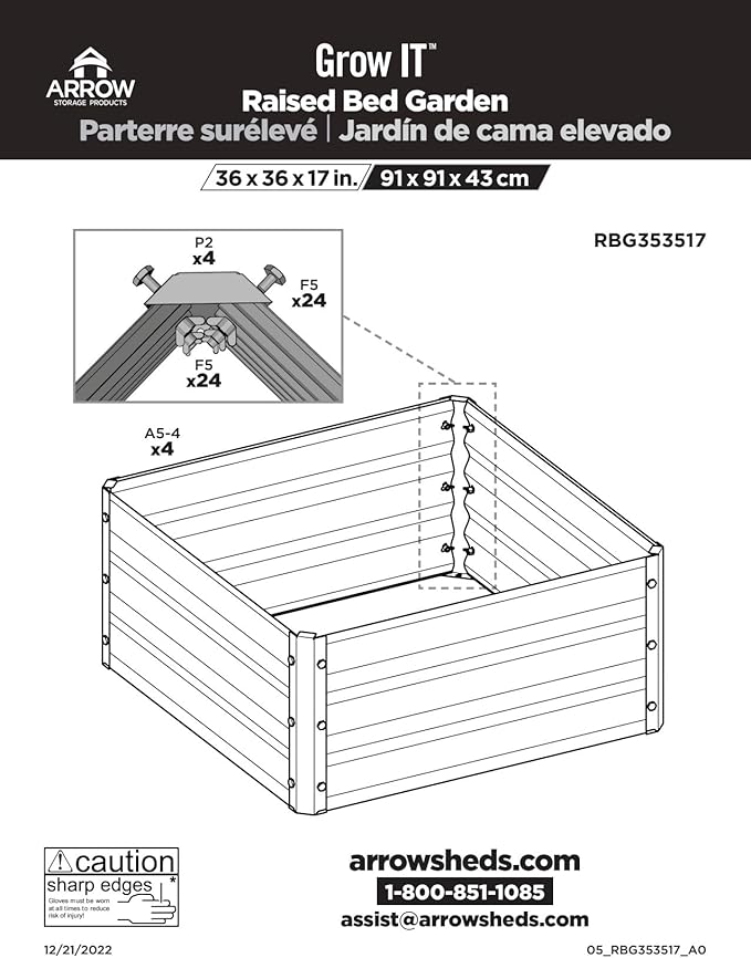 - STREAMLINED ASSEMBLY: Measuring 36" x 36" 17", this raised garden bed requires quick and easy assembly with just bolts and wingnuts