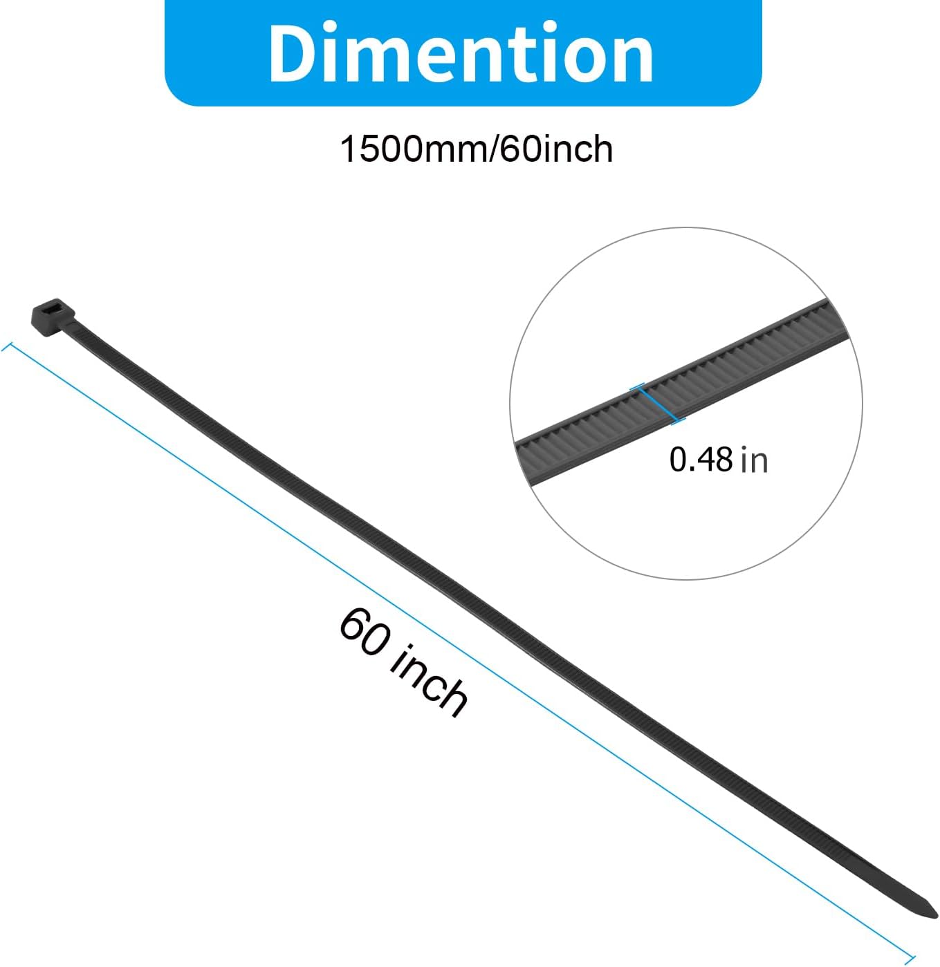 XINGO 60 inch Blcak Zip Ties Heavy Duty 20 PCS, 250 lbs Ultra Strong Plastic Wire Ties, Large Cable Ties Extra Long Tie Wraps, Indoor and Outdoor UV Resistant