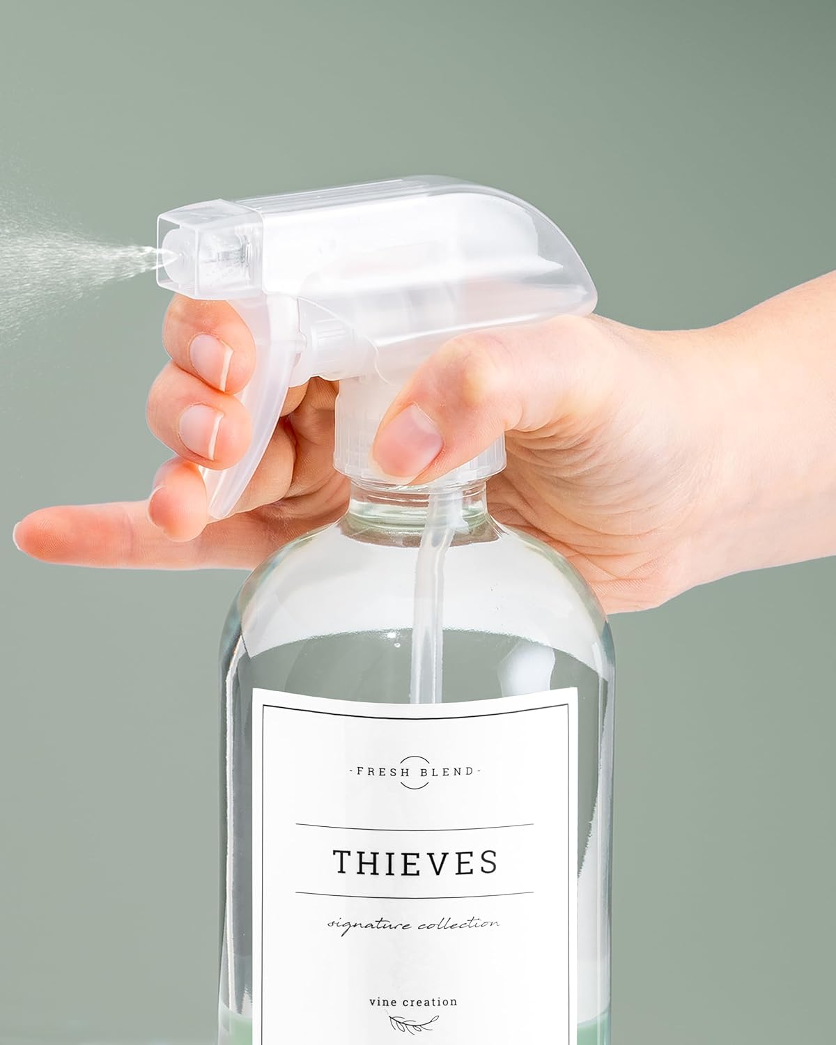 - PREMIUM WATERPROOF LABELS - Ten elegant high-end labels included, glass cleaner, countertop cleaner, vinegar, all purpose cleaner, thieves, bathroom cleaner, degreaser, disinfectant, linen spray, and stain remover. Durable and waterproof for daily use. Additionally two chalk labels for any other needs, white marker is included. Premium Labels measurement 3" x 3".