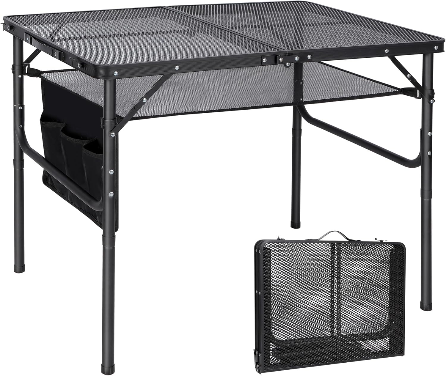 - Durable & Stable: The frame of the grill table is made of high quality aluminum, The metal mesh is dense and durable. U-shaped frame and buckle to fix help to increase the stability.