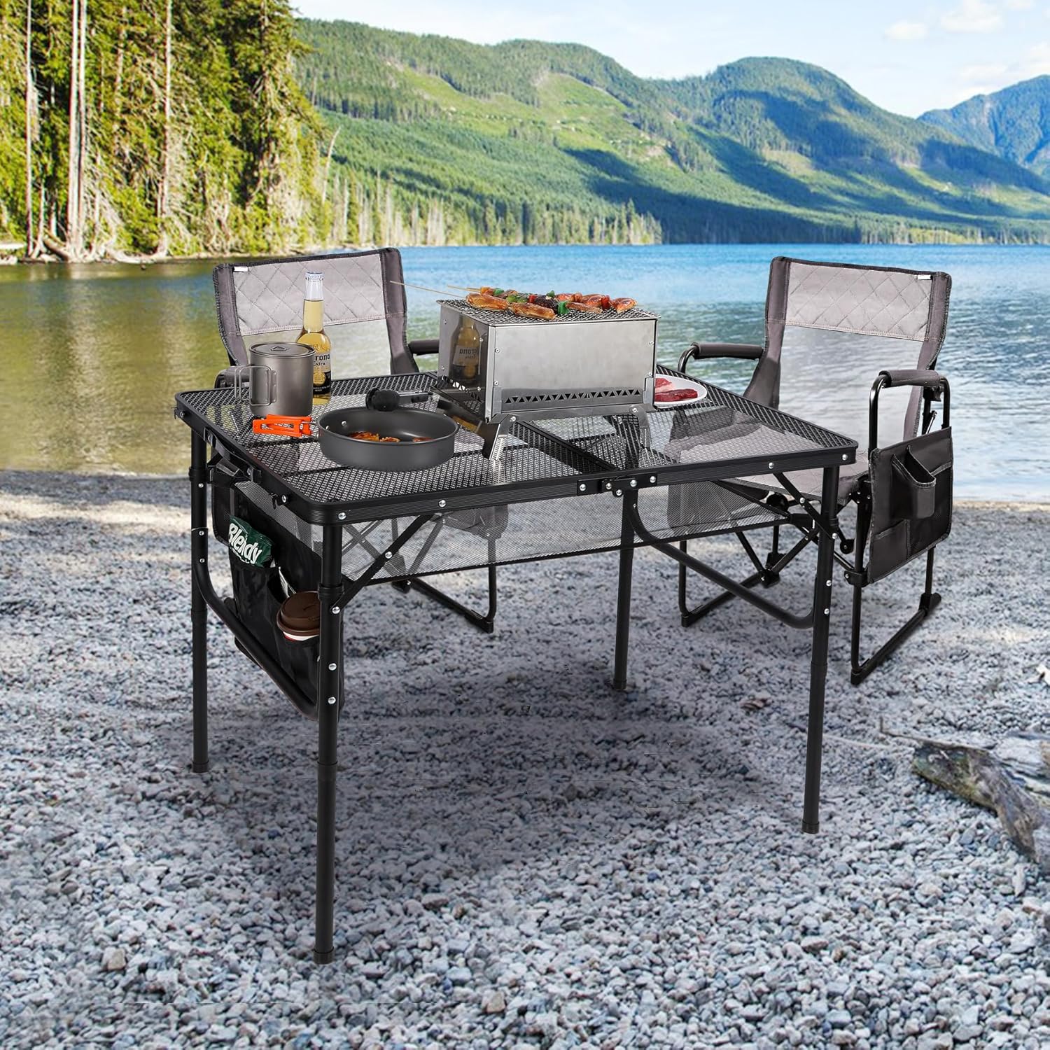 - Large Storage Space: The compact camping table is equiped with a detachable mesh bag to hold and store your drinks and books. You can put he barbecue grill, food, or cards on the tabletop. It provides easy access to you.