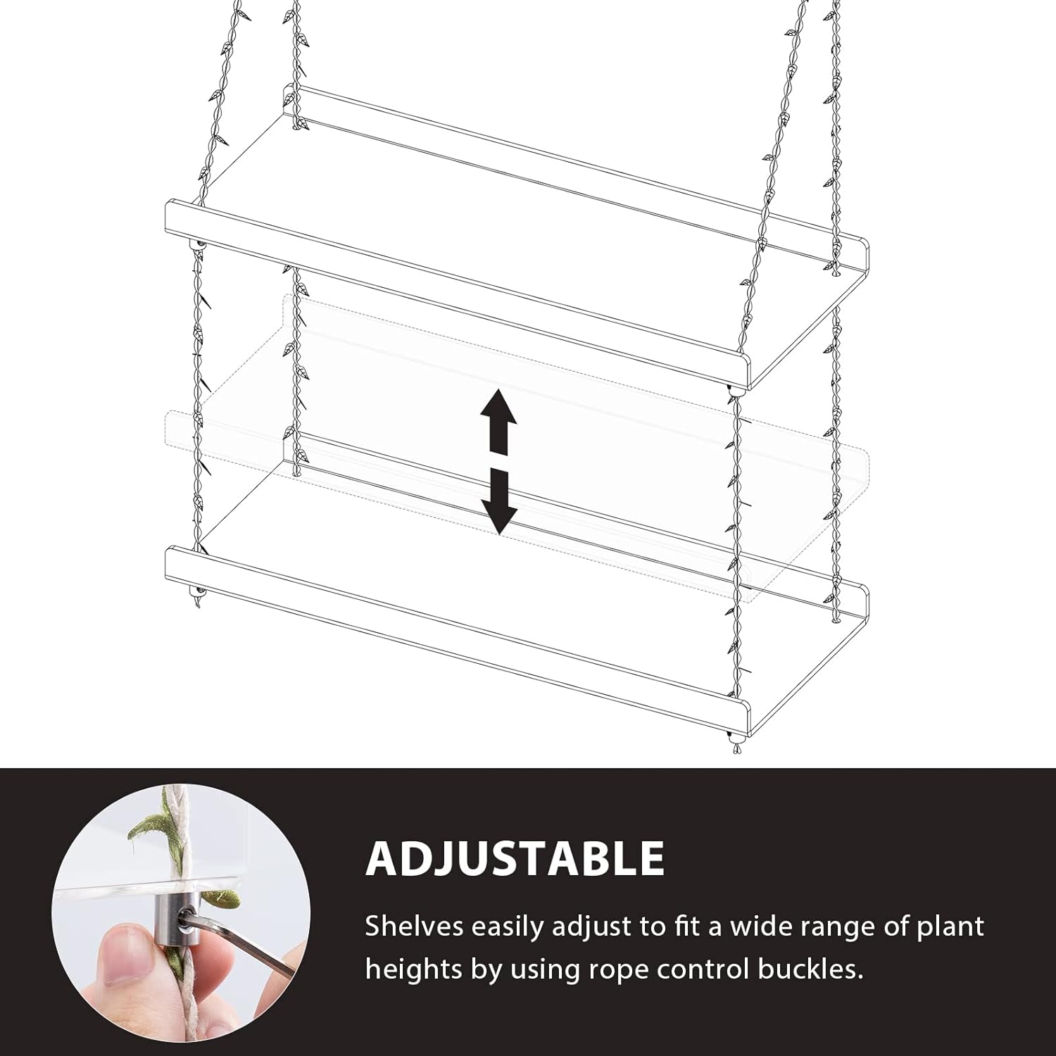 - 【Sturdy and Stable】 - Made of thick, solid acrylic shelves and sturdy jute twines, the floating window shelves with the 2 rectangular tiers are uniquely long-lasting to ensure that the shelves can be used longer.