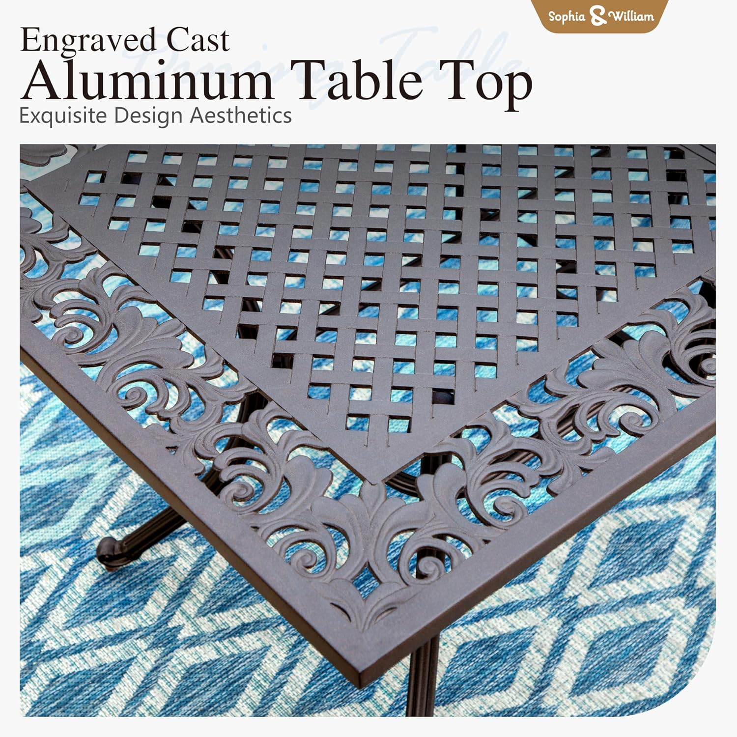 - LongLasting: The cast aluminum dining tables and chairs have excellent waterproof and UV protective performance, making them suitable for outdoor use all year round without any color changes. They are fireproof, scratchresistant, and rainresistant, and can bear heavy pressure without being deformed or damaged. Compared to outdoor furniture made of other materials, this set has a longer service life