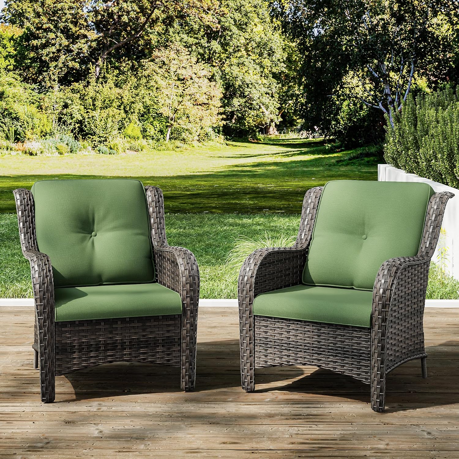 Joyside Outdoor Wicker Chair Rattan Patio Dining Chairs Set of 2 PE Wicker Patio Chairs with 4inch Seat Cushions Outdoor Patio Seating Chair for Garden, Backyard Deck(Mixed Grey/Green)