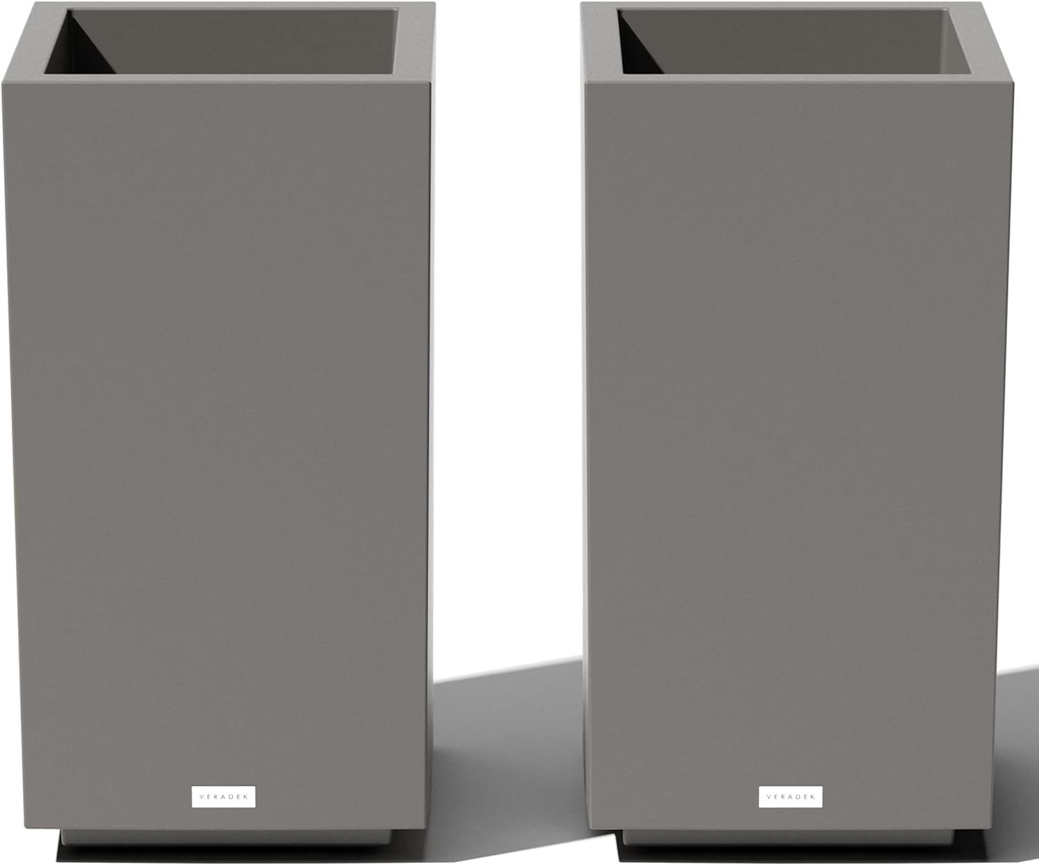 Veradek Block Series Pedestal Planter - Tall Planter for Indoor or Outdoor Front Porch | All-Weather Use with Removable Insert Bucket | Modern Décor for Flowers, Tall Trees, Faux Plants