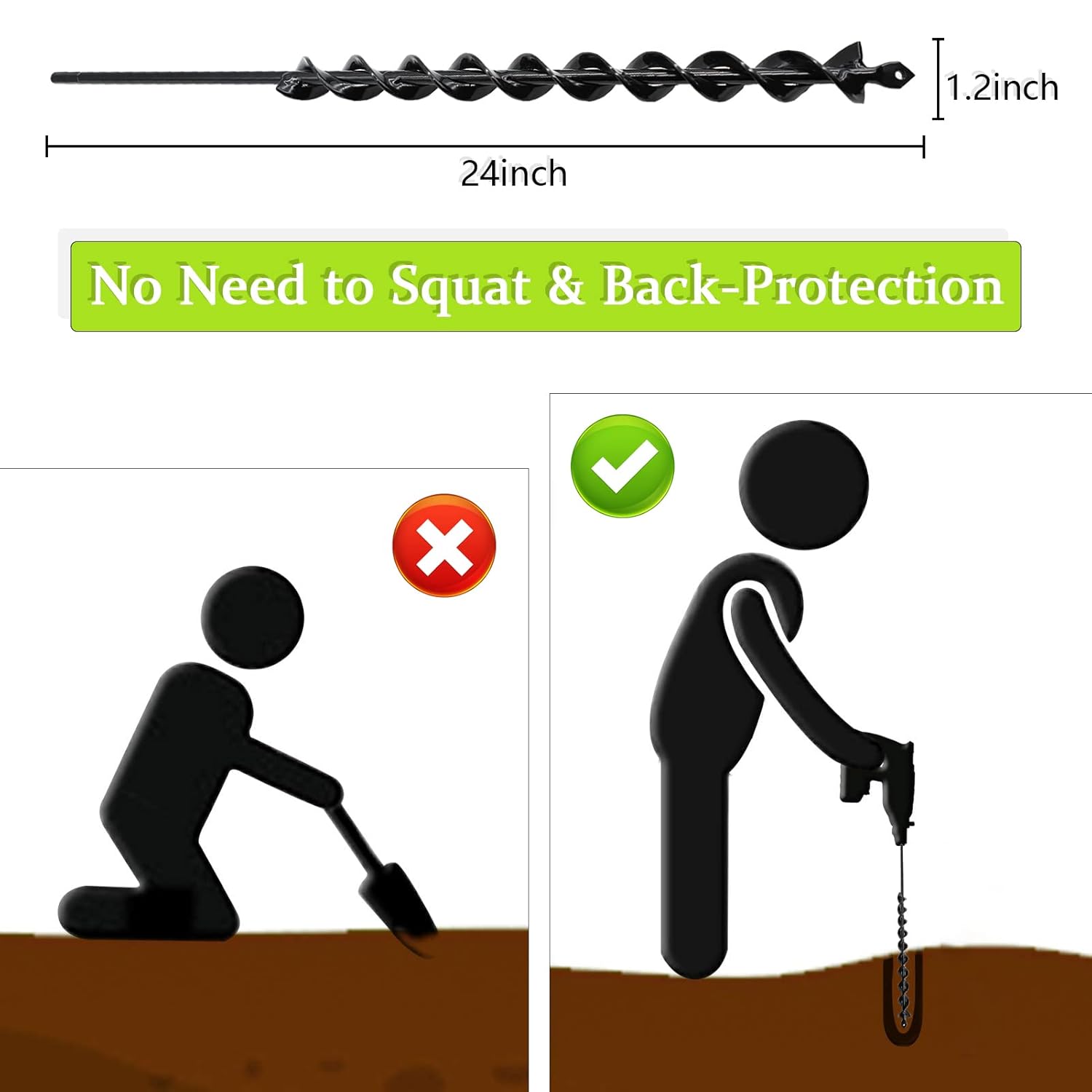 TCBWFY 24 Inch Auger Drill Bit for Planting - 1.2"x24" Long Handle Easy Planter Garden Auger - Bulb & Bedding Plant Augers - Post Hole Digger for 3/8”Hex Drive Drill