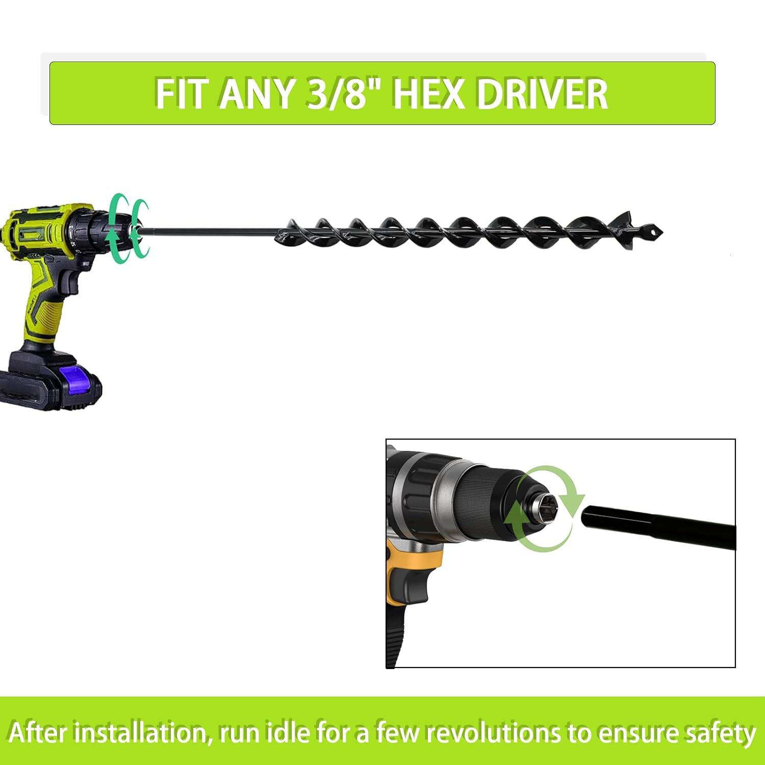- Compatible with any hex drive electric or cordless drills or auger power heads, easy to operate and suitable for users at different levels.