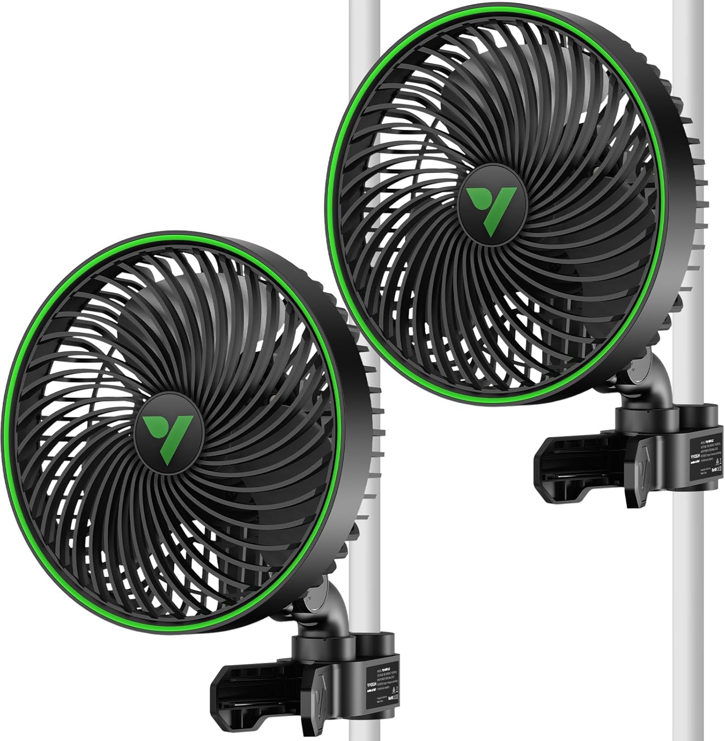VIVOSUN 2-Pack AeroWave E6 Gen2, Grow Tent Clip Fan 6”, EC Motor, Smart Control, Powerful Oscillating Fan, Local Timer, Weatherproof IP54, for Hydroponics Circulation Cooling, Black
