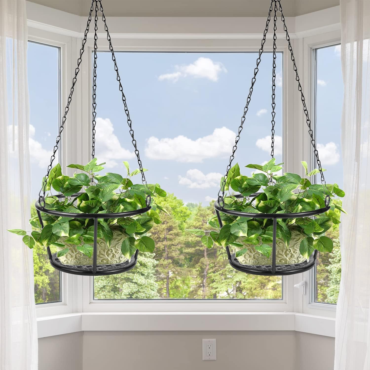 - Easy Installation: The package includes 2 x basket, 2 x hanging chain set. These plant hangers are easy to use, Just simply attach the chain to the basket and it's ready to hang anywhere you want. They can combine into one double tier plant hanger when 2 sets of the chains are connected.
