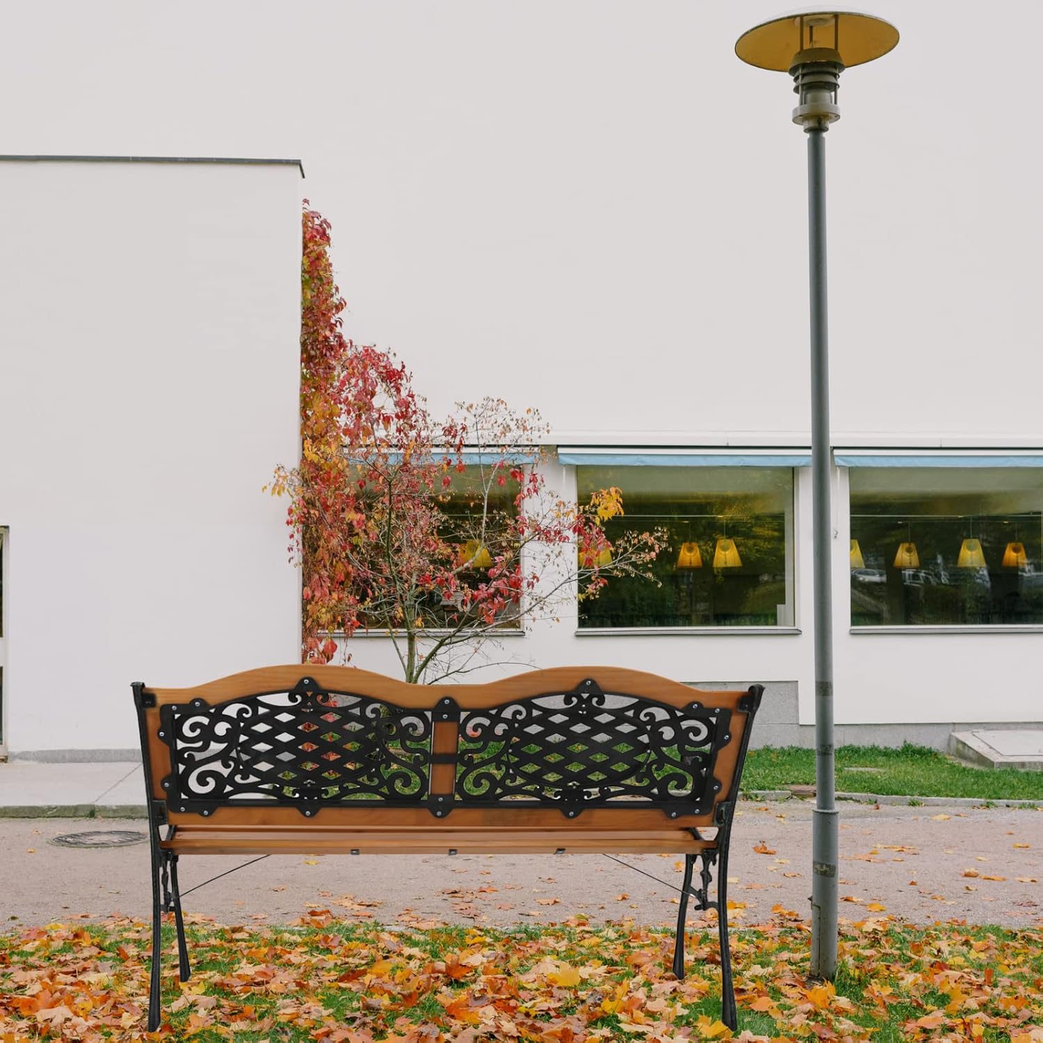 Outvita 49.5in Garden Bench, Patio Wood Love Seat with Metal Armrest Retro Style for Patio Porch Deck Yard Lawn Poolside(Classical)