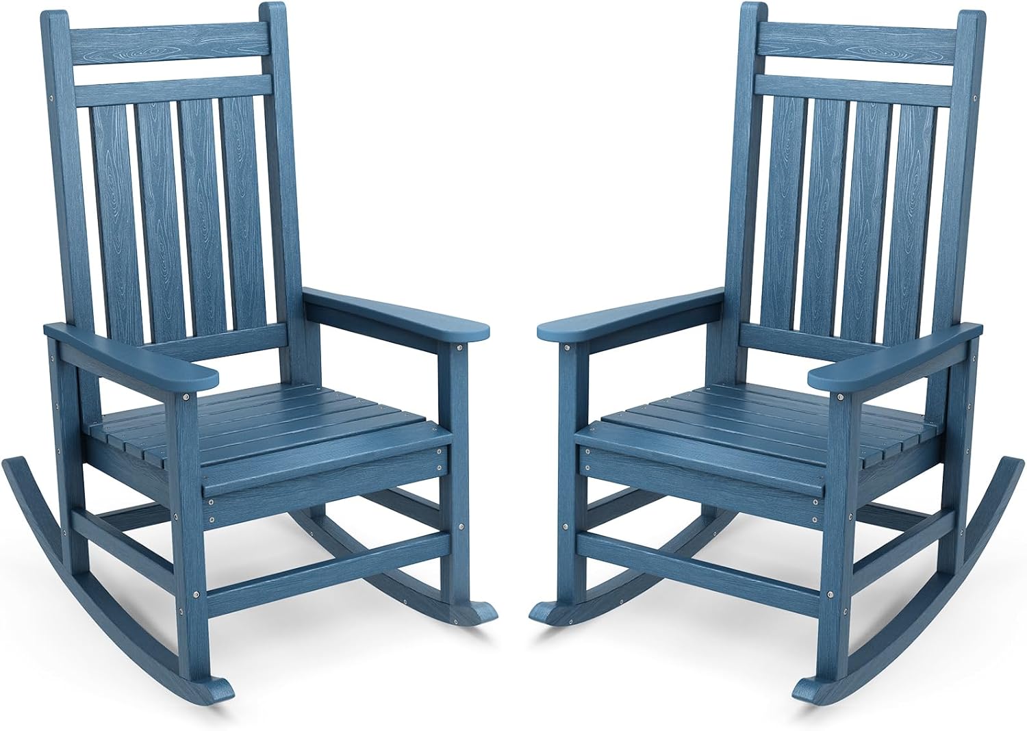 SERWALL Outdoor Rocking Chair, HDPE Rocking Chair for Adults, All Weather Porch Rockers for Lawn Garden, Navy
