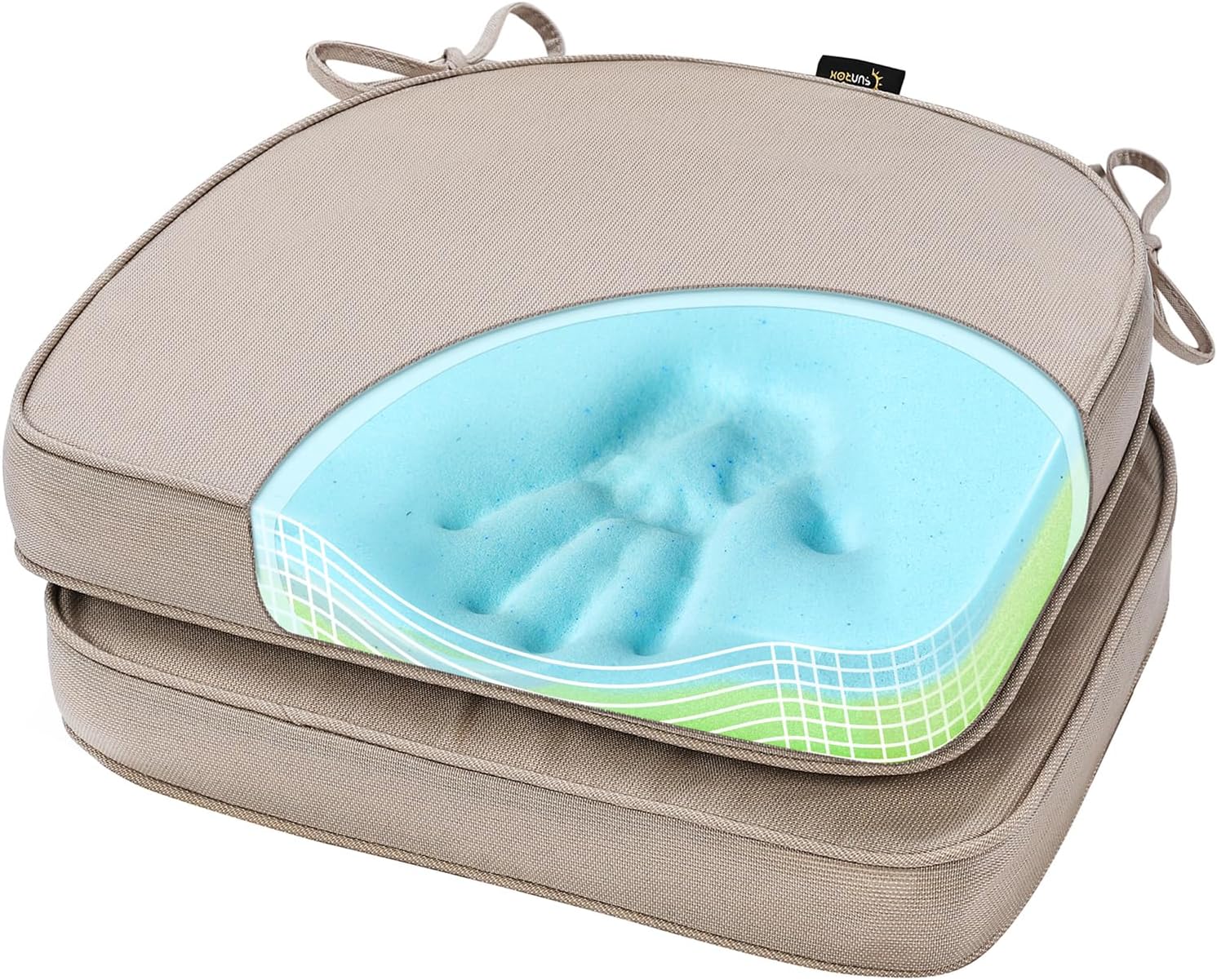 SUNROX Gel Memory Foam Chair Cushions, FadeShield Water-, Stain-Resistant Durable Reversible Seat Cushion Pads with Ties for Indoor/Outdoor Kitchen Dining Office, 19"x19", Set of 2, Husk Birch