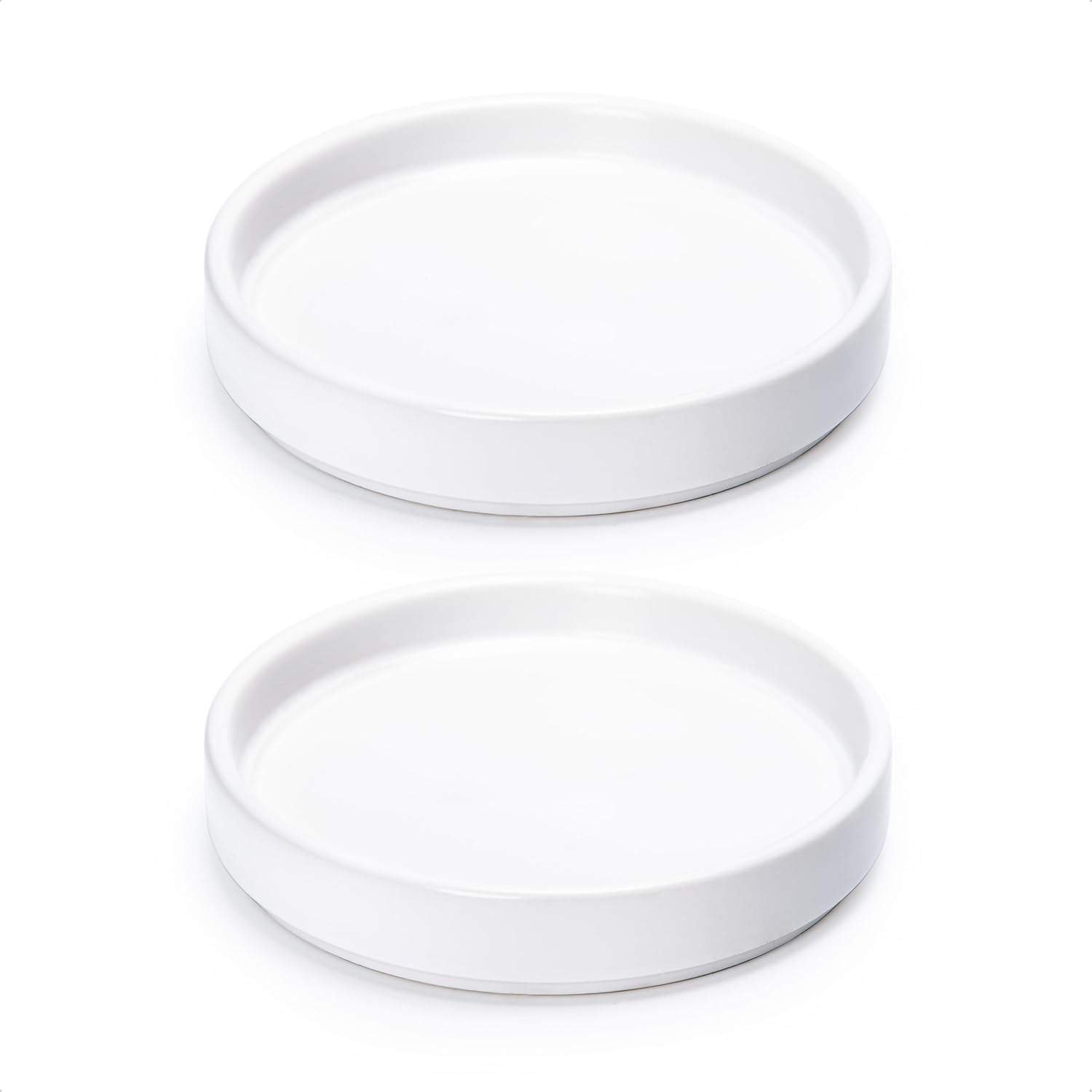 D'vine Dev Modern Round 5.4 Inch Ceramic Plant Pot Saucer, Planter Pot Drainage Tray for Indoor Plants, Set of 2, Matte White, 97-T-A-22