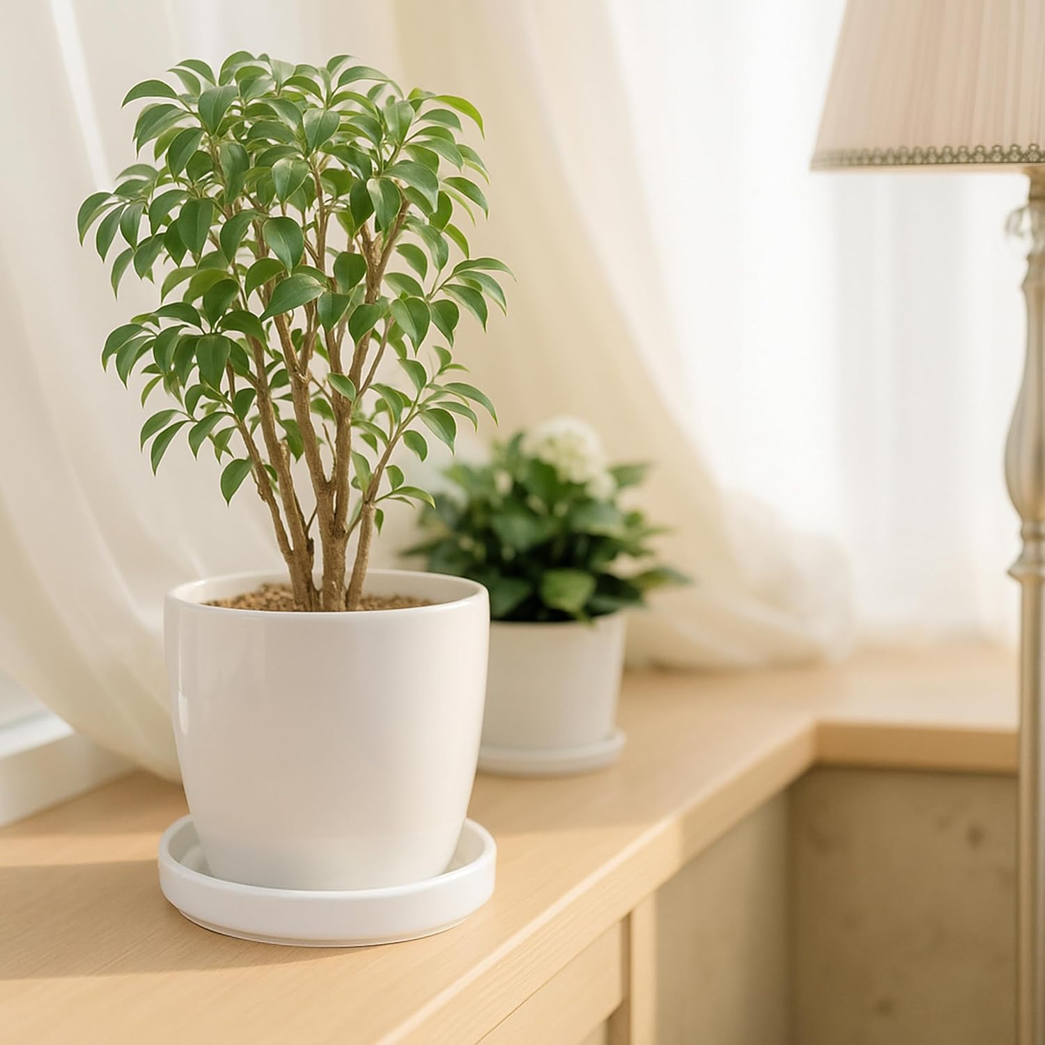 - Practical Set: Includes two 5.5-inch matte white plant drainage drip trays, complete with two protective scratch pads to safeguard your table/furniture surfaces.