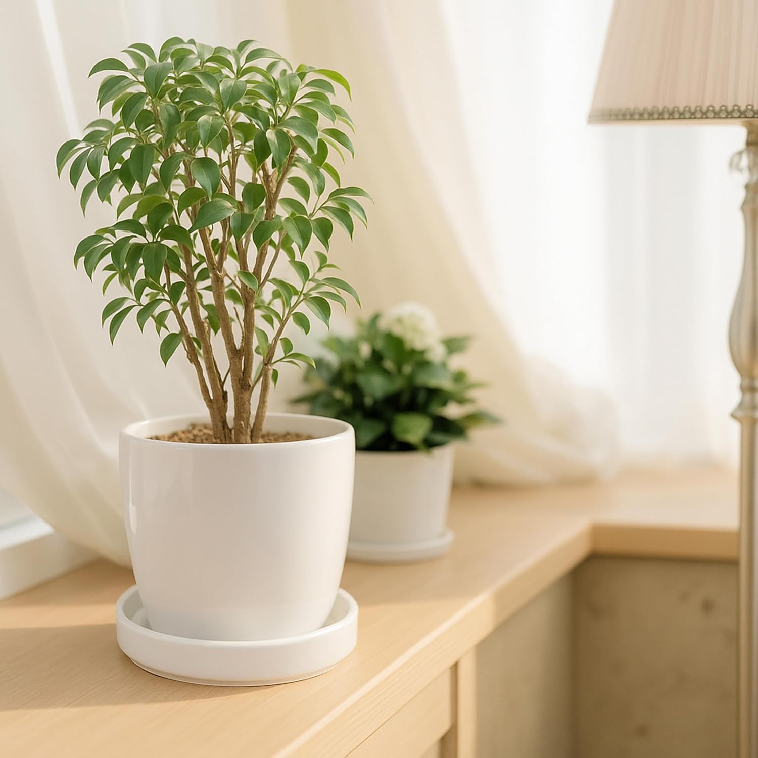 - Practical Set: Includes a 5.4-inch matte white plant drainage drip tray, complete with a protective scratch pad to safeguard your table/furniture surfaces.