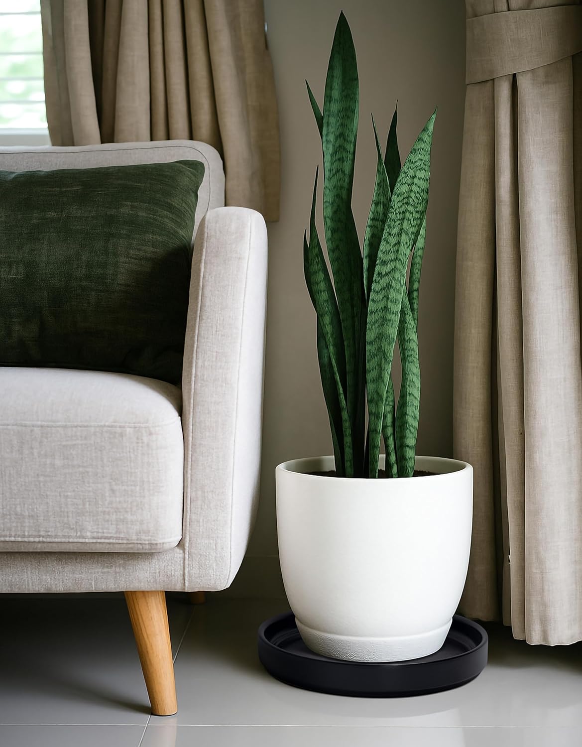 - Practical Set: Includes a 10.4-inch matte black plant drainage drip tray, complete with a protective scratch pad to safeguard your table/furniture surfaces.