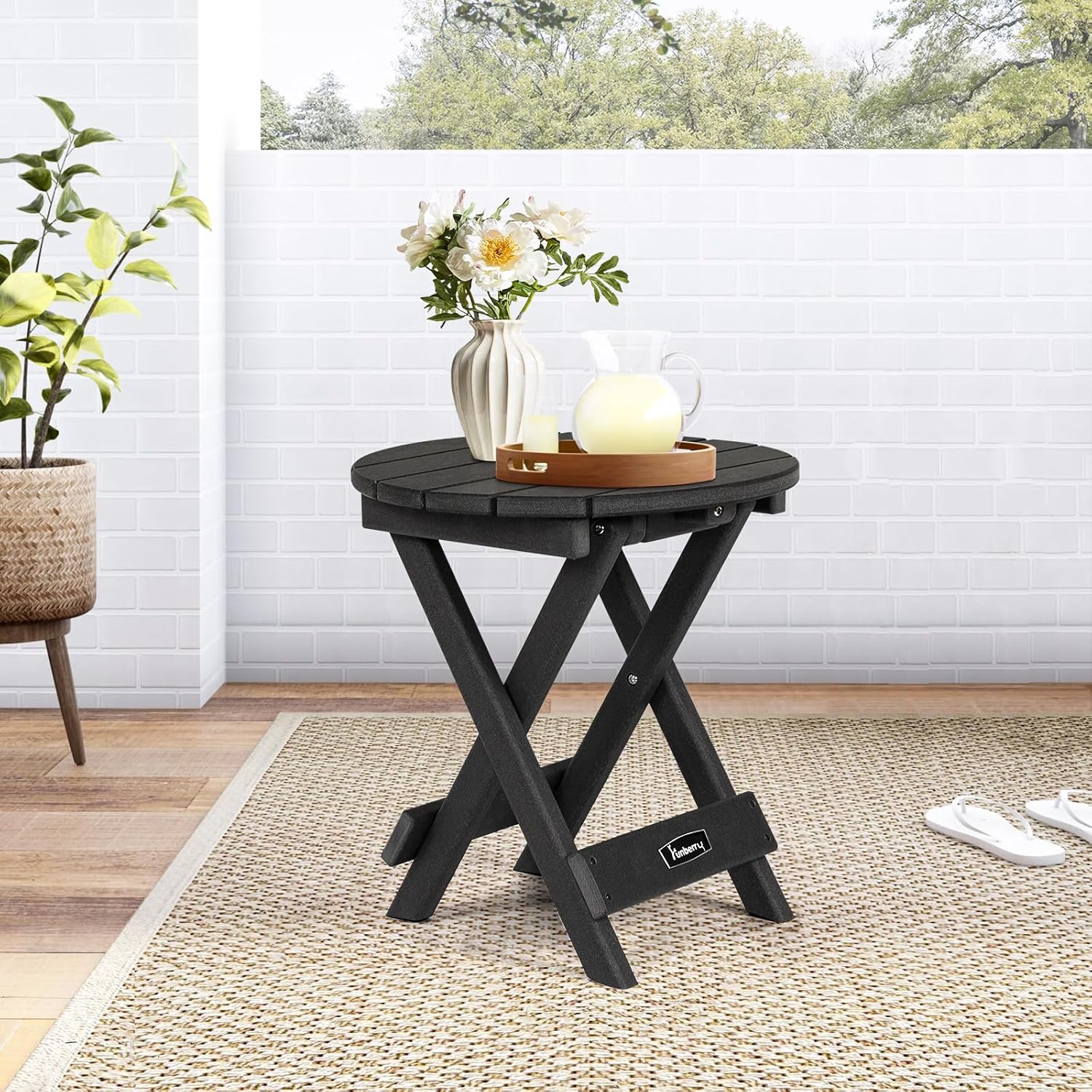 FUNBERRY Outdoor Folding Adirondack Side Table, No Assembly Portable Patio End Tables HDPE All Weather