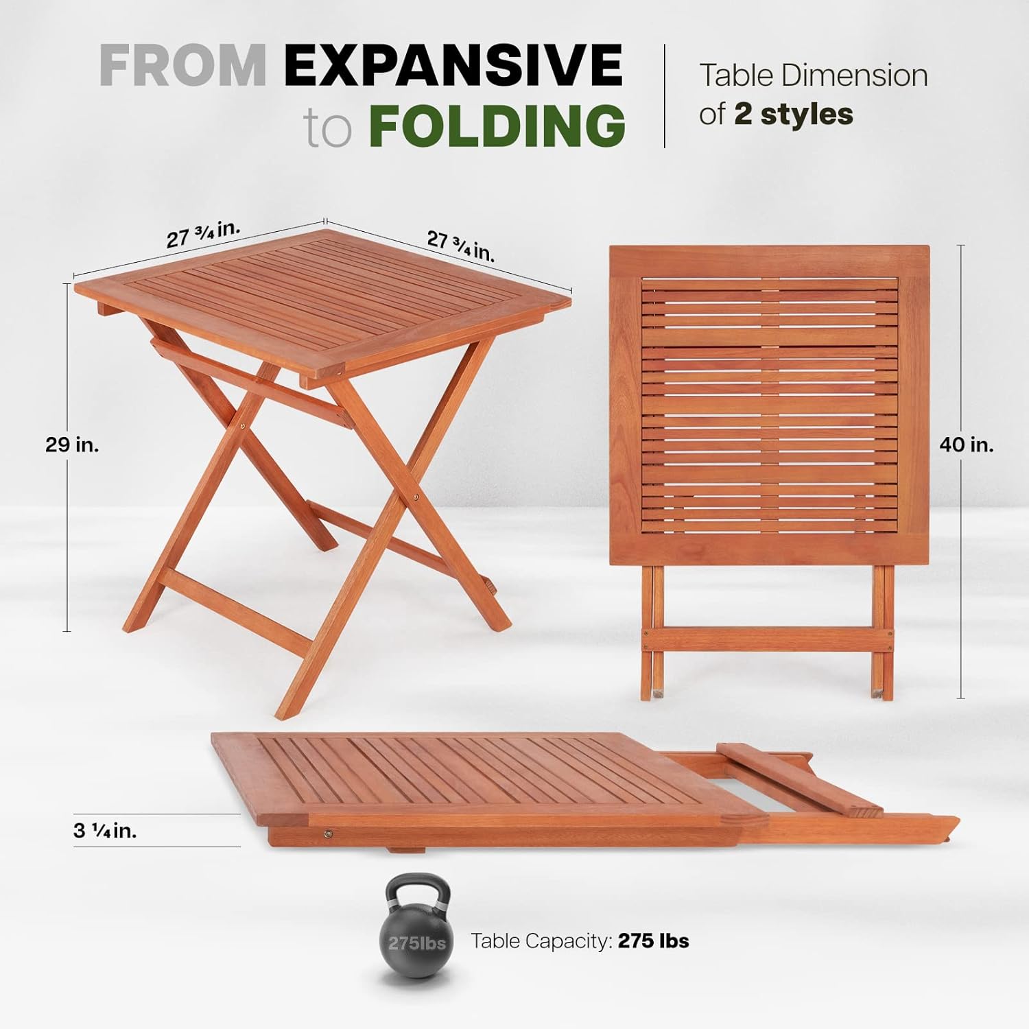 - Idzo Aiden Solid Wood Dining Table Outdoor 27.75x29 Inch, Hold Up to 275lbs, Reliable Outdoor Dining Table for Garden, Backyard, Porch, Patio & Balcony, Eucalyptus Wood Folding Dining Table