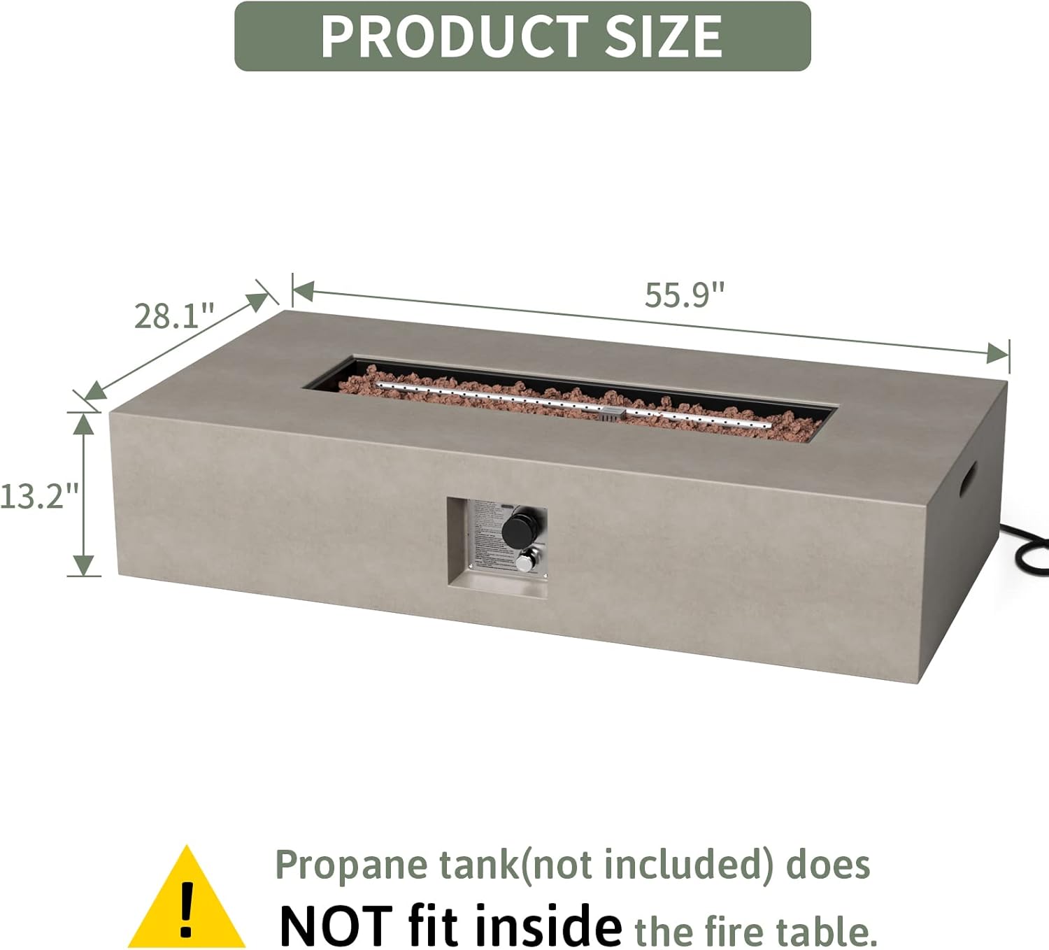 COSIEST 56-inch x 28-inch Outdoor Propane Fire Pit Coffee Table w Concrete Rectangle Base, CSA Certified, 50,000 BTU, Free Lava Rocks and RainCover, Fits 20lb Tank Outside(Gray)