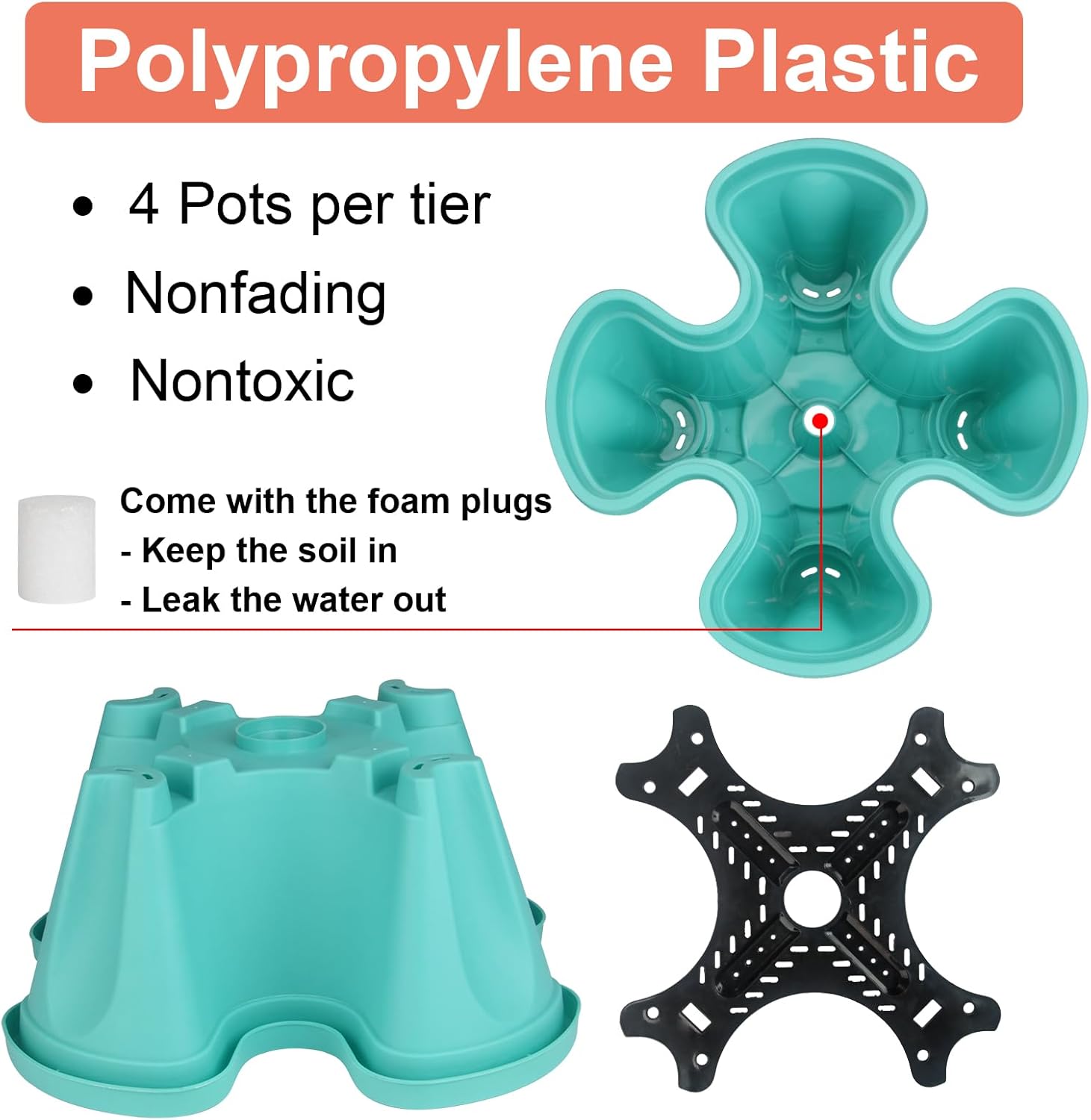 DUNCHATY Stackable Planter, Vertical Garden Planter with Wheels and Tools, Self Watering Strawberry Planter Indoor/Outdoor 5 Tier Herb Planter Pots for Growing Vegetables and Succulents, Teal