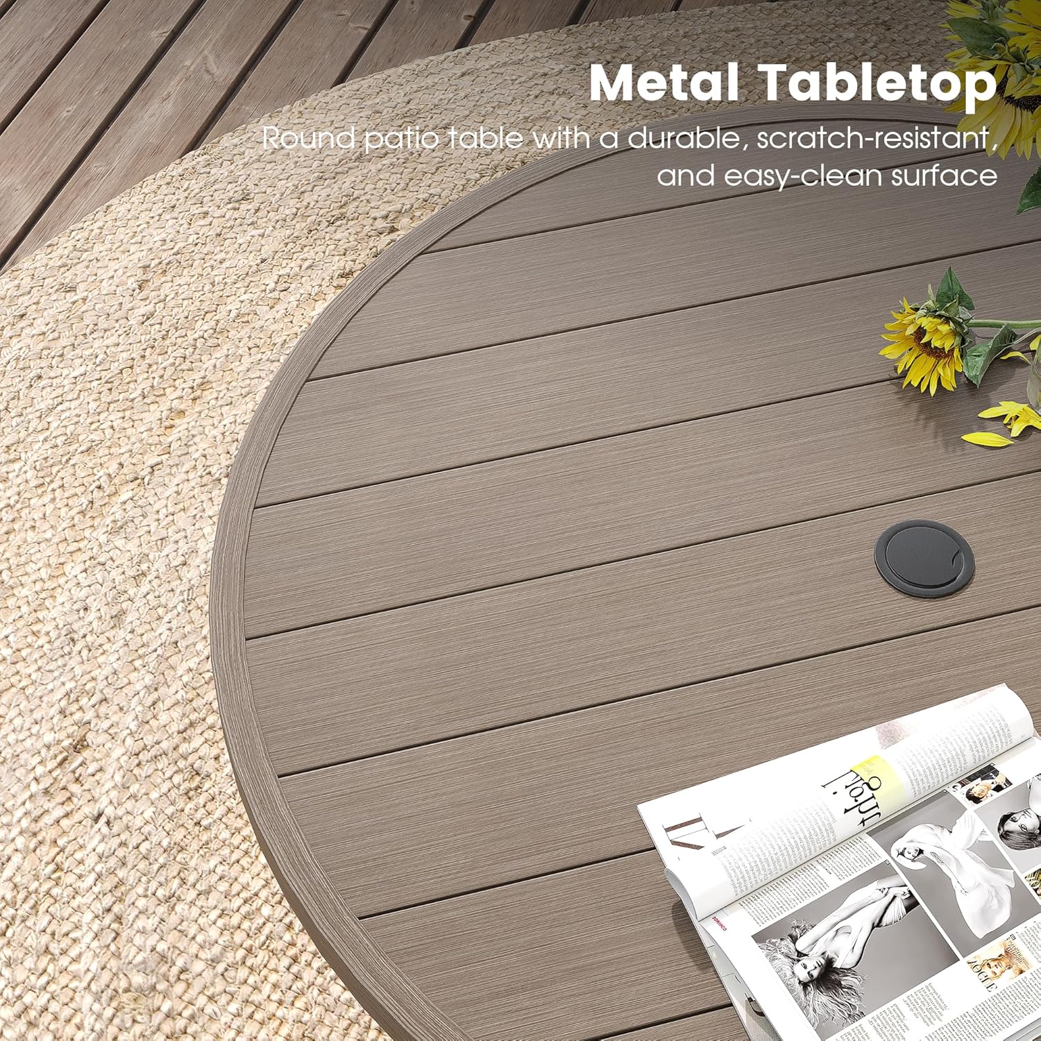 DIFY Outdoor Dining Table for 4, Round Patio Table with Umbrella Hole for Garden, Backyard and Porch (Grey)