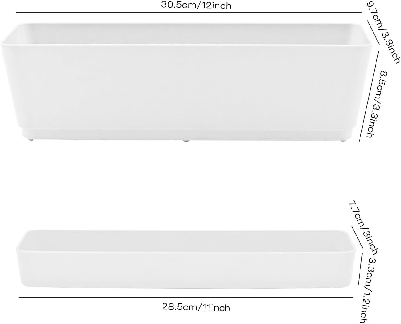 - Lightweight, Simple and Decorative- Each rectangle planter measures 12 x 3.8 x 3.3", and the saucer measures approx. 11.2 x 3 x 1.2". These window flower boxes are perfect for planting vegetables, succulents, cactus, herbs, flowers and more. Beige color can match any home decor perfectly, these succulent planters are great for placing at indoors and outdoors