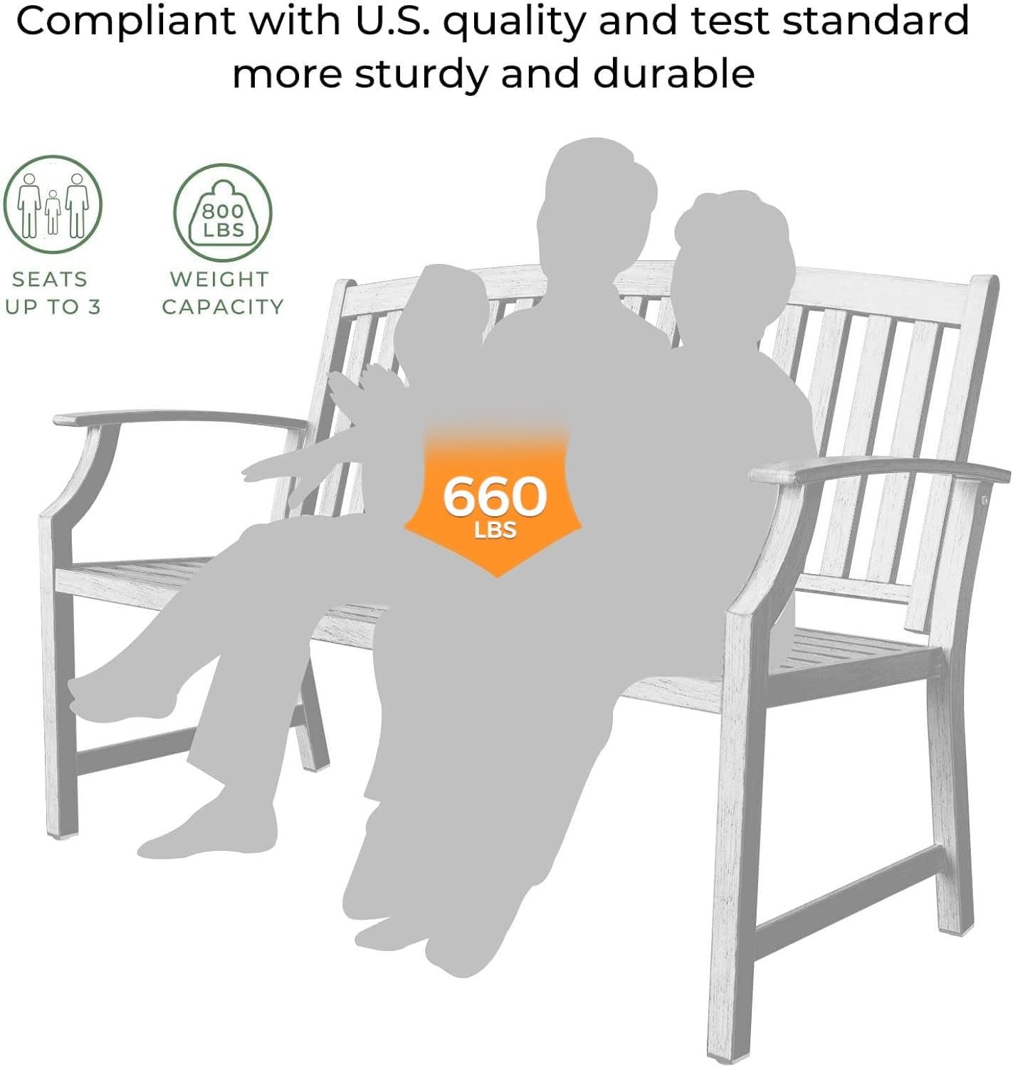 - 【COMFORTABLE SIZE】Overall Dimension 50.39"(L) x 21.92"(W) x 35.03"(H), the seat capacity of garden bench allows up to 2 adults and 1 child to share a space