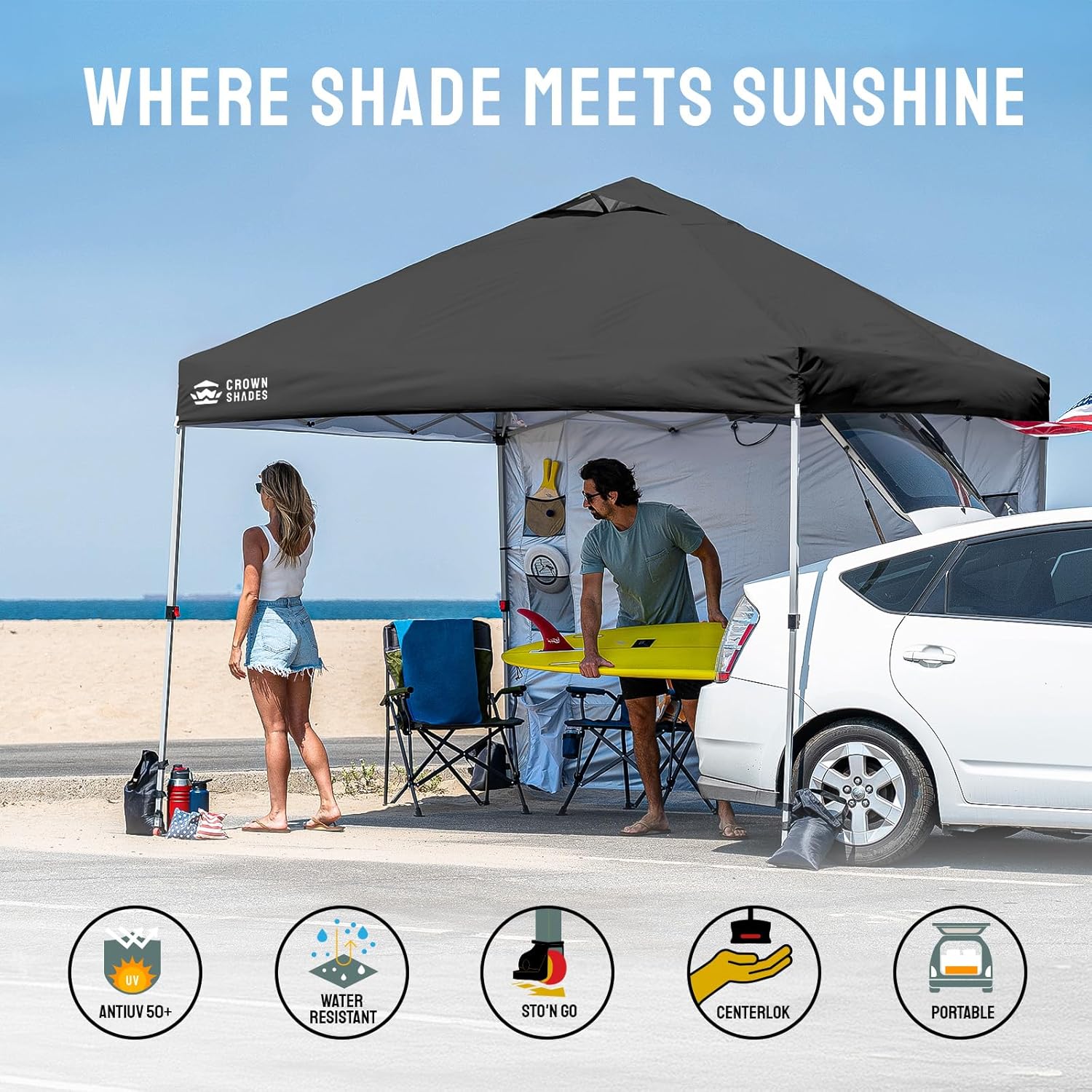 CROWN SHADES Canopy Tent, 10 x 10 Foot Portable Pop Up Outdoor Shelter with Pocket Sidewall, Push Center Lock, UV Protection, and Carry Bag, Black