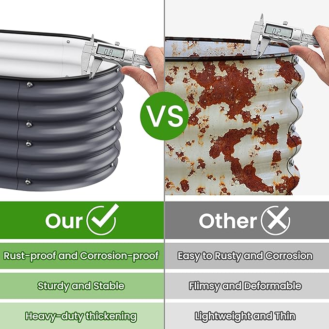 - Long-Lasting Quality:The garden beds are made of zinc aluminum-magnesium steel for durability. This advanced material is more resistant to corrosion and rust than traditional galvanized materials. Lasts 2-6 times longer than traditional galvanized raised beds, far longer than wood raised garden bed.