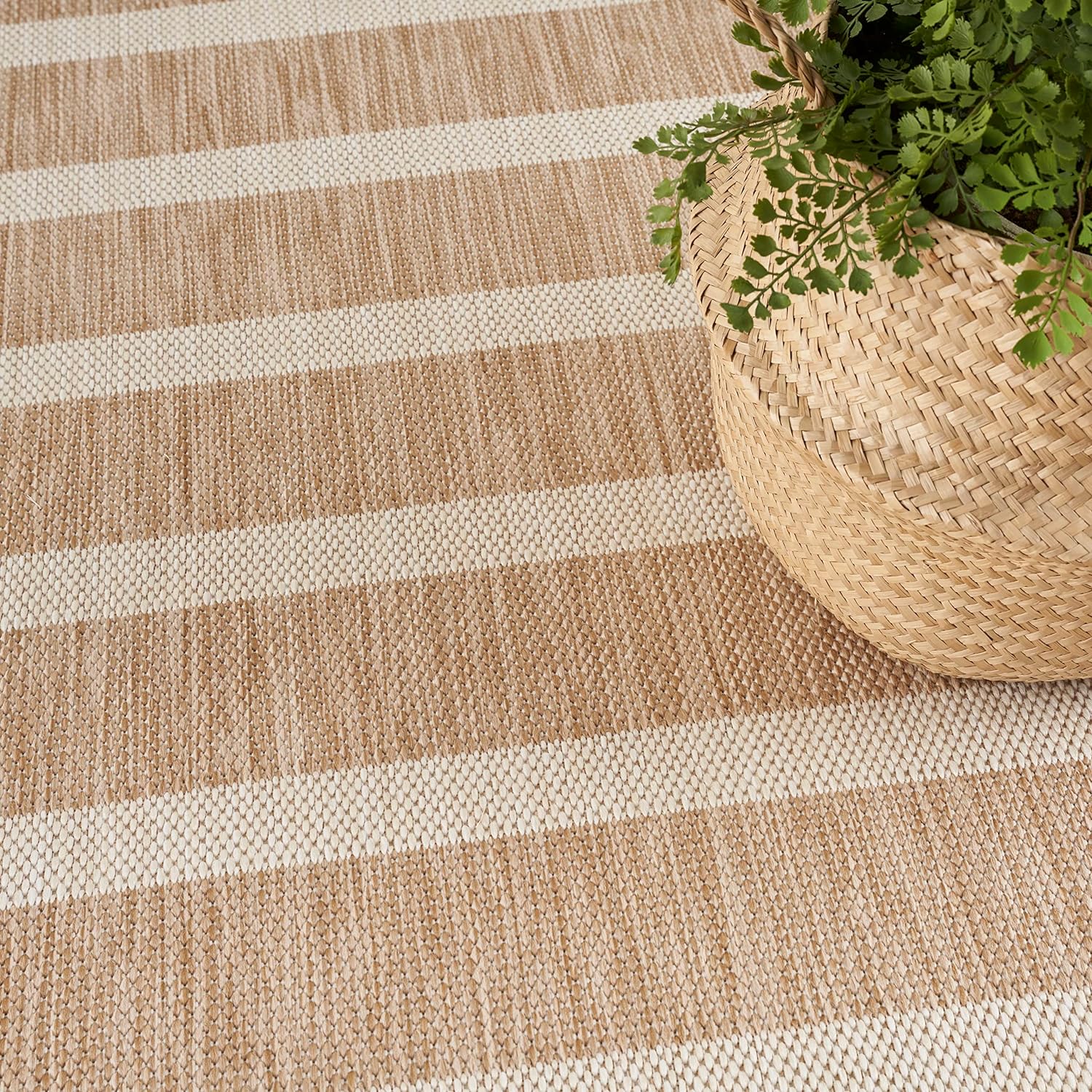 - COASTAL STYLE: This striped outdoor rug brings breezy, laid-back charm to your space
