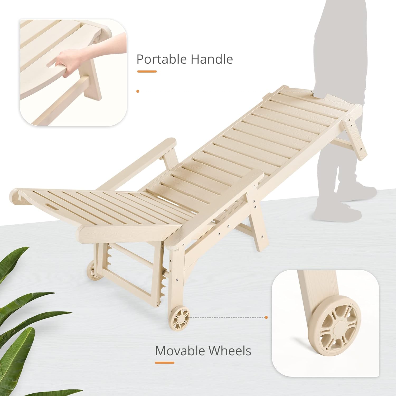 - Movable Wheels: This lounge chair also has wheels, making it easy to move to different areas such as the poolside, beach, backyard, and garden; This allows you to fully enjoy the beautiful outdoors