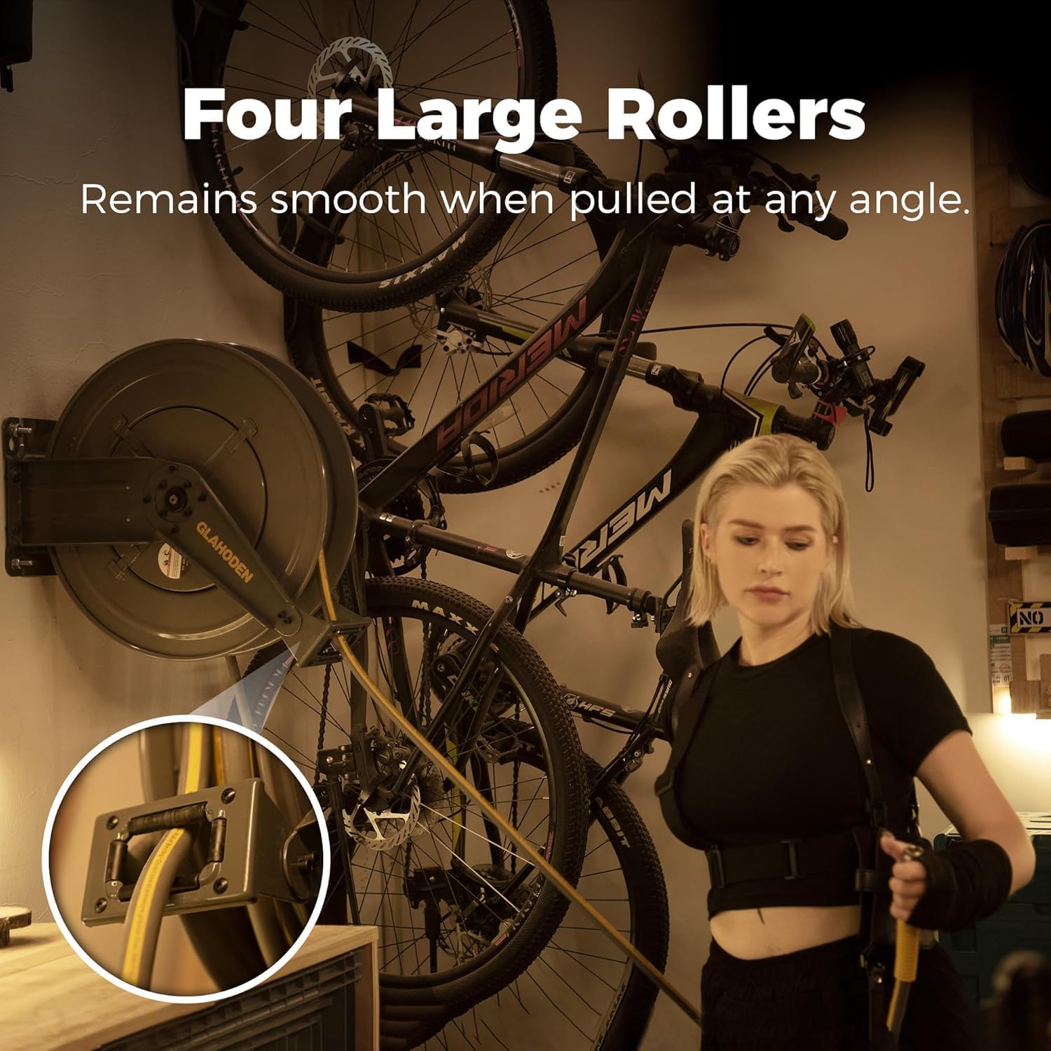 - Heavy Duty Double Arm All-steel Construction: GLAHODEN air compressor hose reel retractable is compact and virtually indestructible by using 0.04 in thickened steel and 0.15 in thick support arm. The high quality powder coated surface is extremely durable and always looks like new (weighs 34.99 lbs, please install on a sturdy surface).