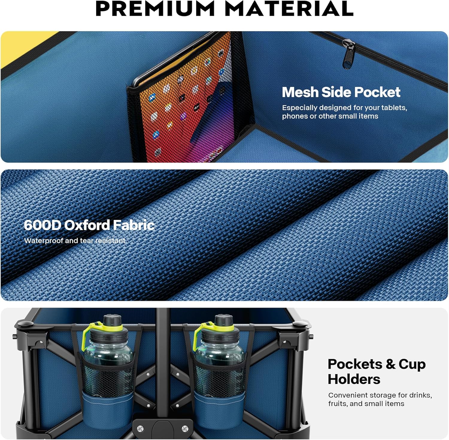 VIVOHOME 200L Collapsible Wagon 300lbs Heavy Duty Folding Utility Garden Cart Foldable Beach Wagons Large Capacity for Camping Picnic - Blue