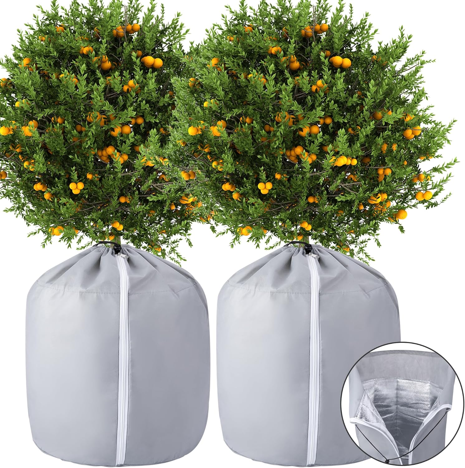 Tlswshsy 2PCS Plant Winter Protection Pot - 27.6" x 25.6" Flower Pot Protection Bag - Anti-Frost Winter Pot Plant Cover with Drawstring and Zipper for Winter Outdoor Fruit Trees Potted Plants Shrub