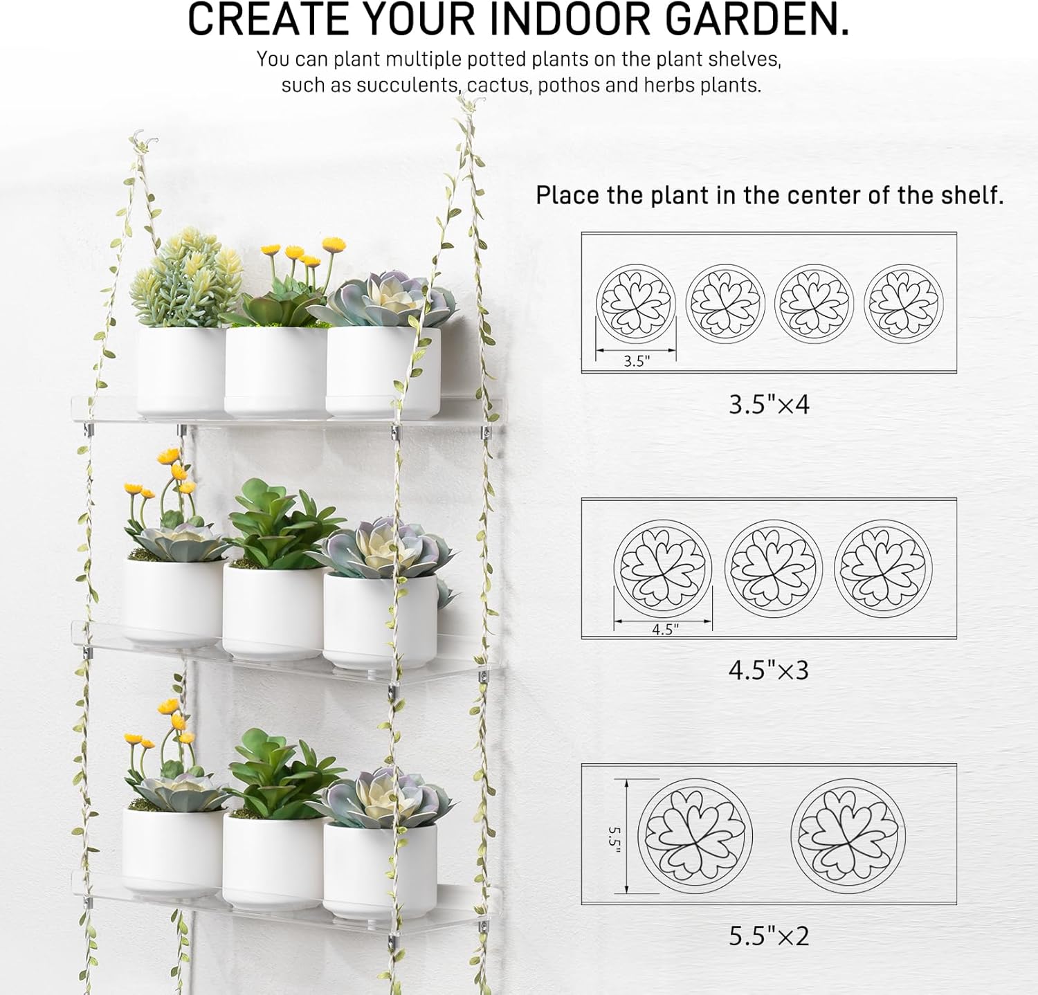 - Perfect for displaying indoor plants like herbs, succulents, and bonsai in windows, walls, etc