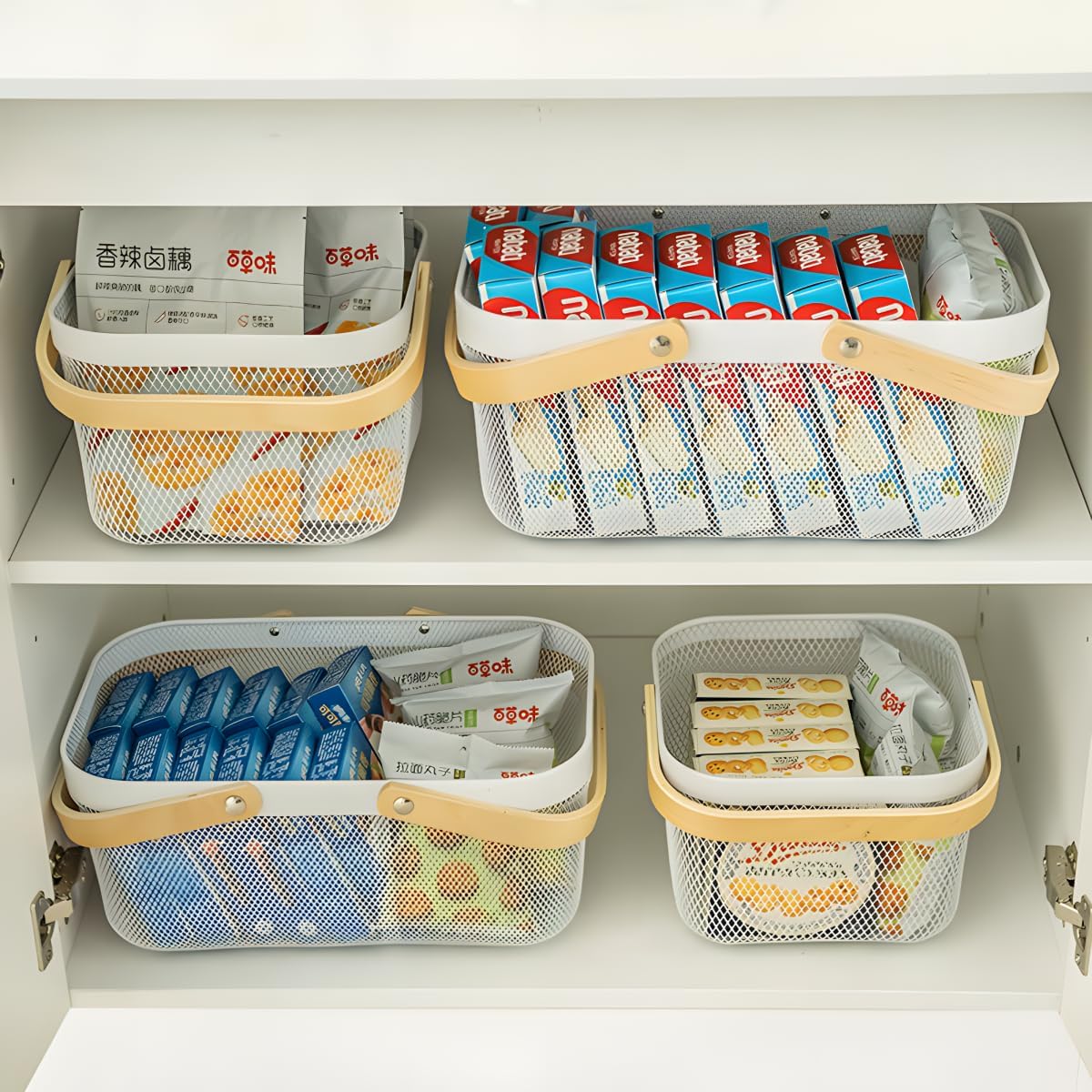 - 🍒 ORGANIZED AND ACCESSIBLE - Declutter your life! A simple way organize and reach everything easily in your shelves, cabinets, closet, under the sink, underneath beds, and other storage spaces. The wire baskets offer breathable storage with easy visibility access your items
