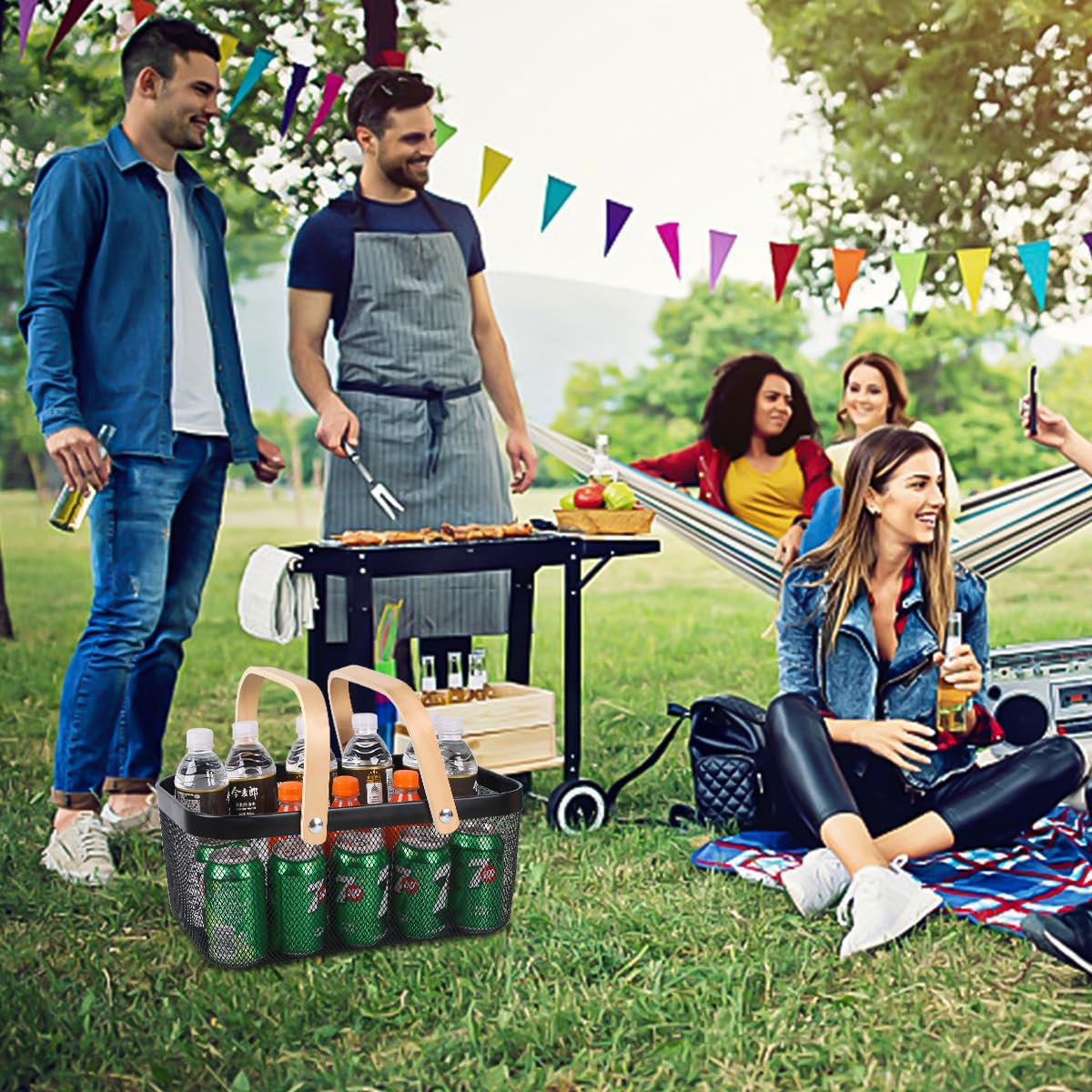 Portable Mesh Harvest Basket - Natural Bamboo Handle Foldable Organizer for Kitchen, Garden & Picnic | Ventilated Storage Bin with Rust-Proof Wire, Space-Saving Farmhouse Decor (Black)